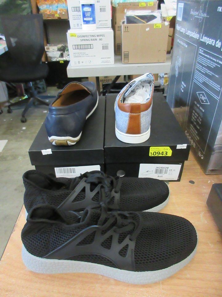 Size 12 loafers, size 11 grey canvas shoes and size 46 black shoes.