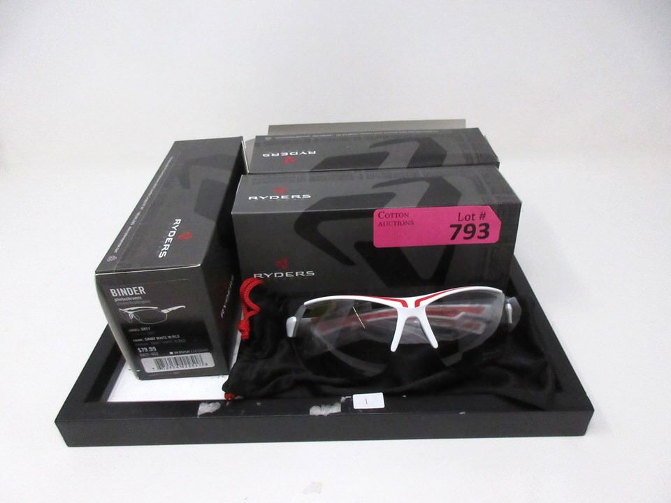 Grey Photochromic lenses with Shiny White with Red Frame. Retail: $79.99 each. Complete with box, attached price tag and soft bag.
