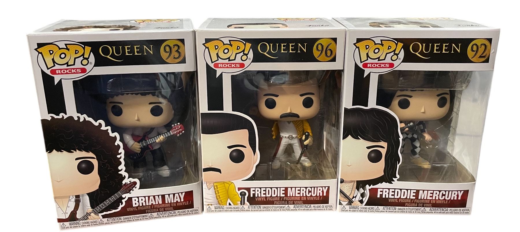 3 New Queen Funko Pops: Freddie Mercury #92, Freddie Mercury #96, & Brian May #93