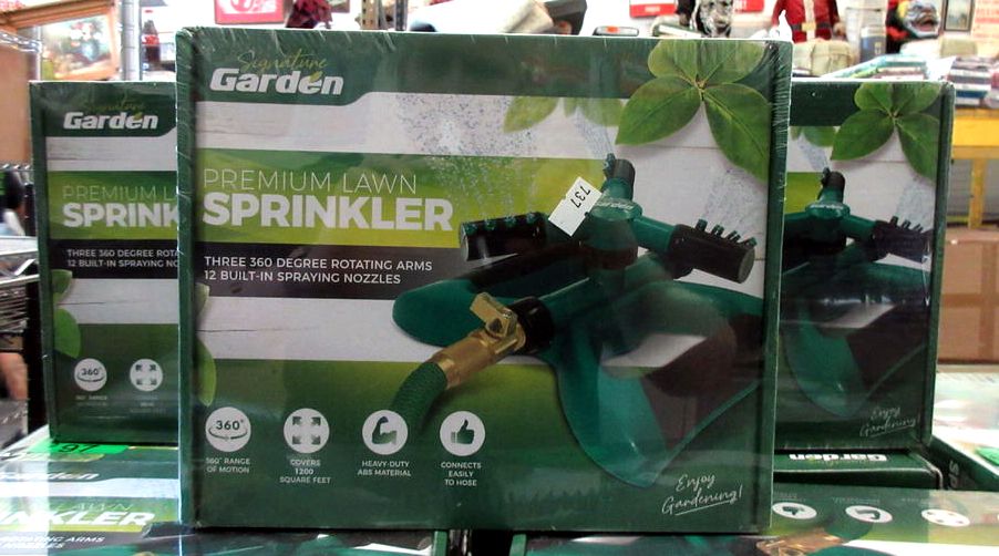 Three 360 degree rotating arms & 12 built-in spraying nozzles. Covers 3600 square meters. Sealed boxes.