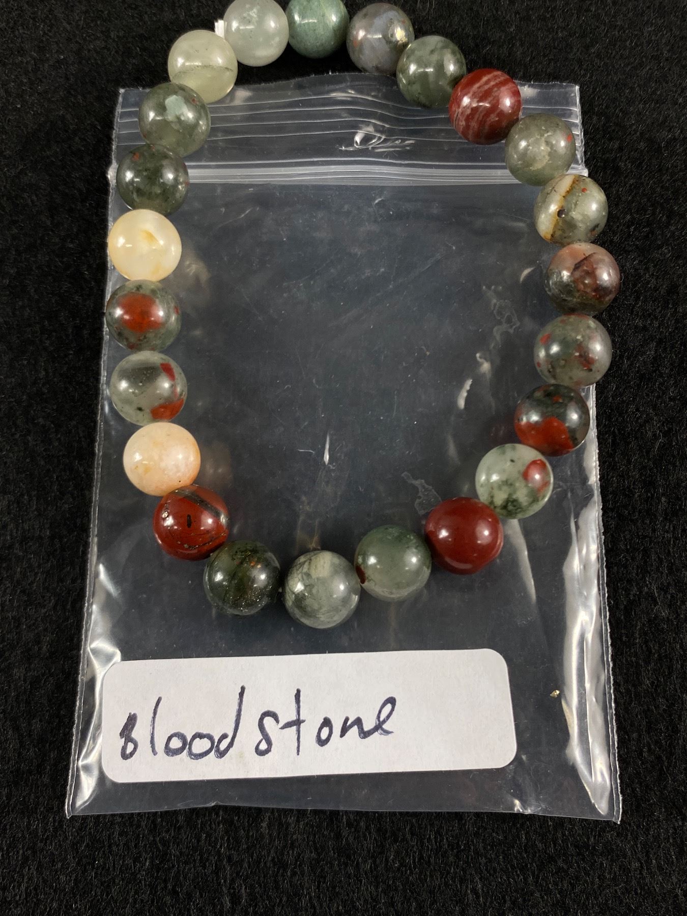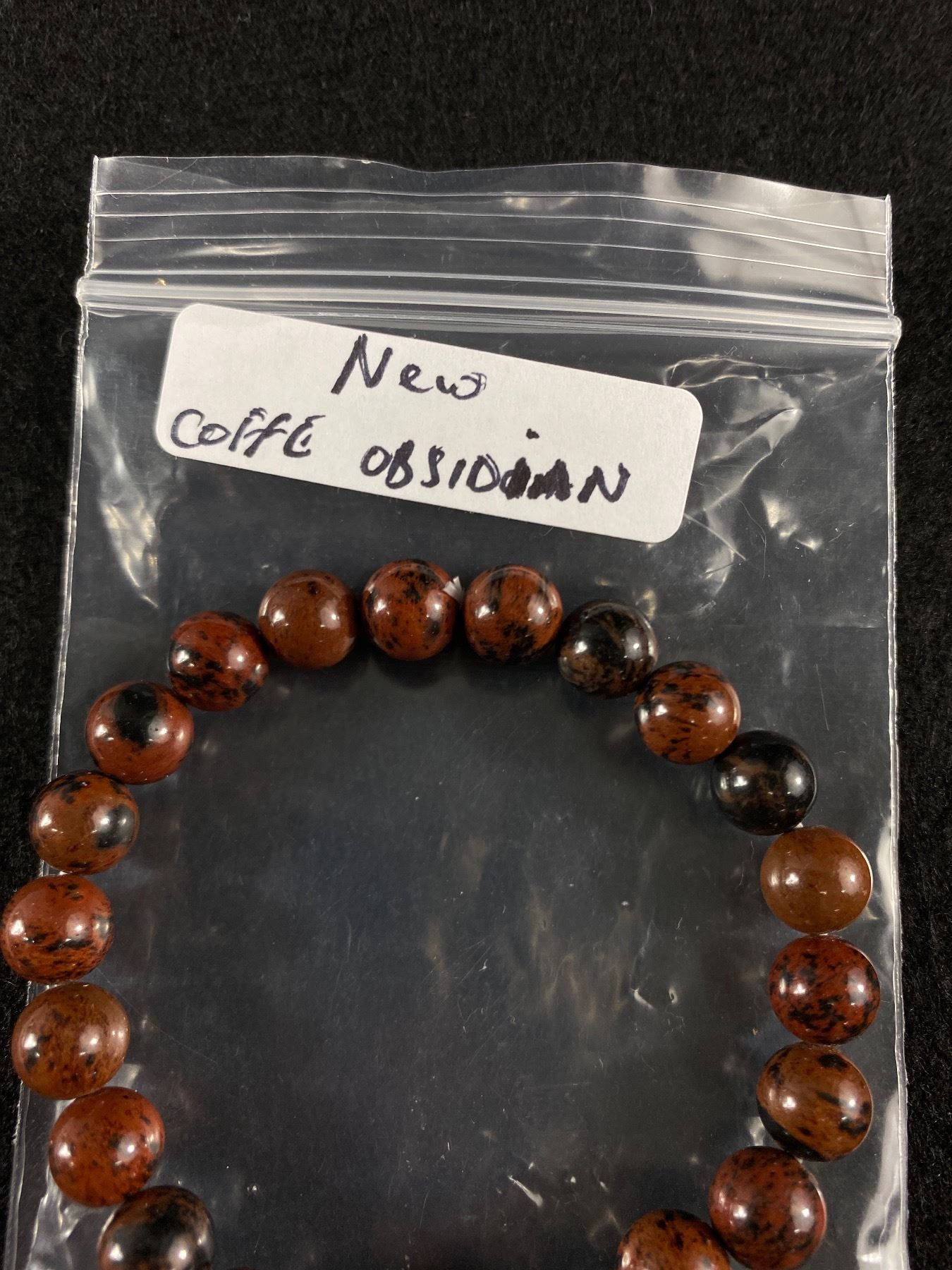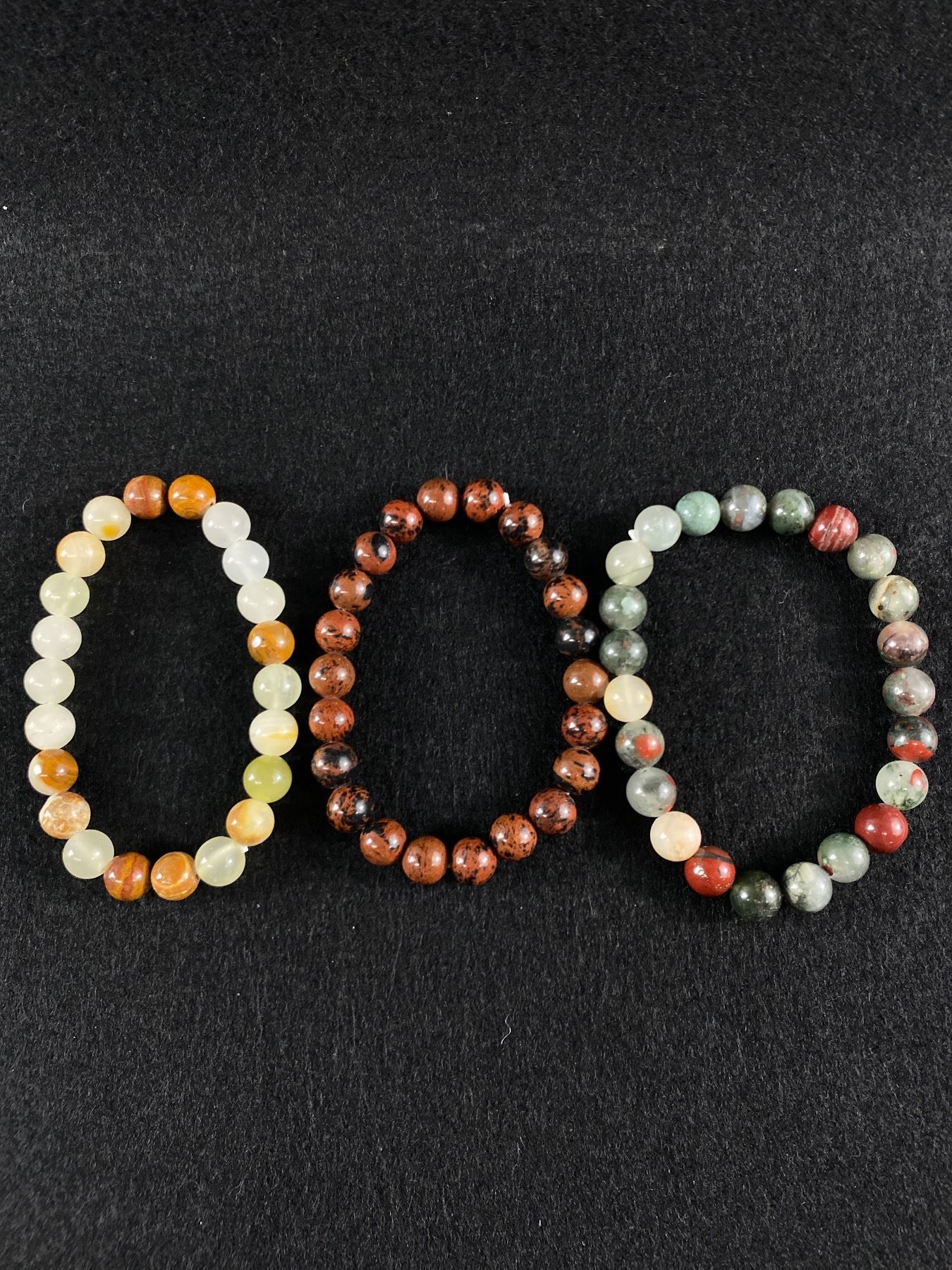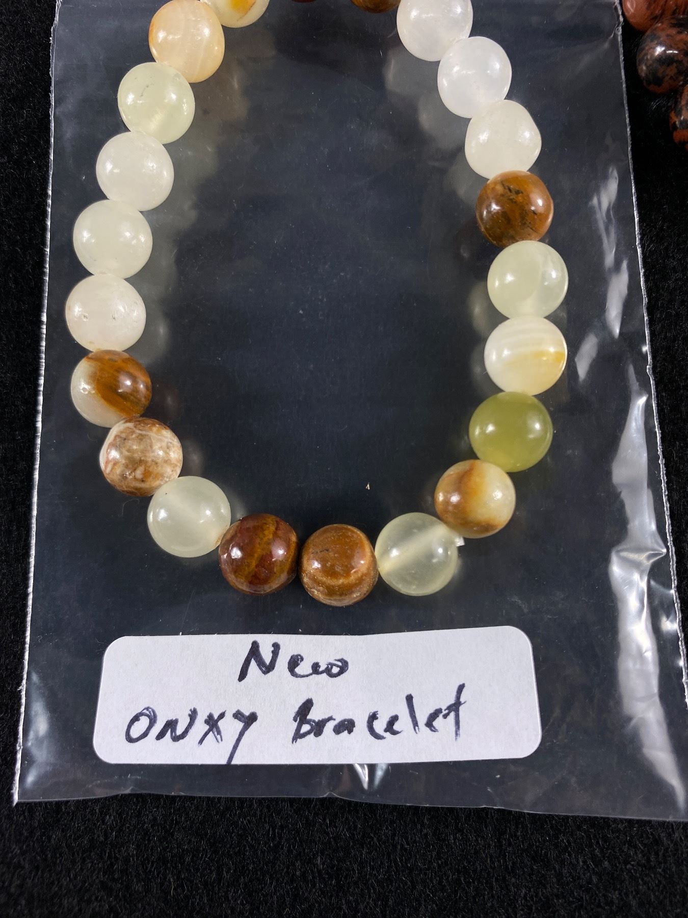 3 New Stone Bead Stretch Bracelets - Onxy, Bloodstone & Coffee Obsidian