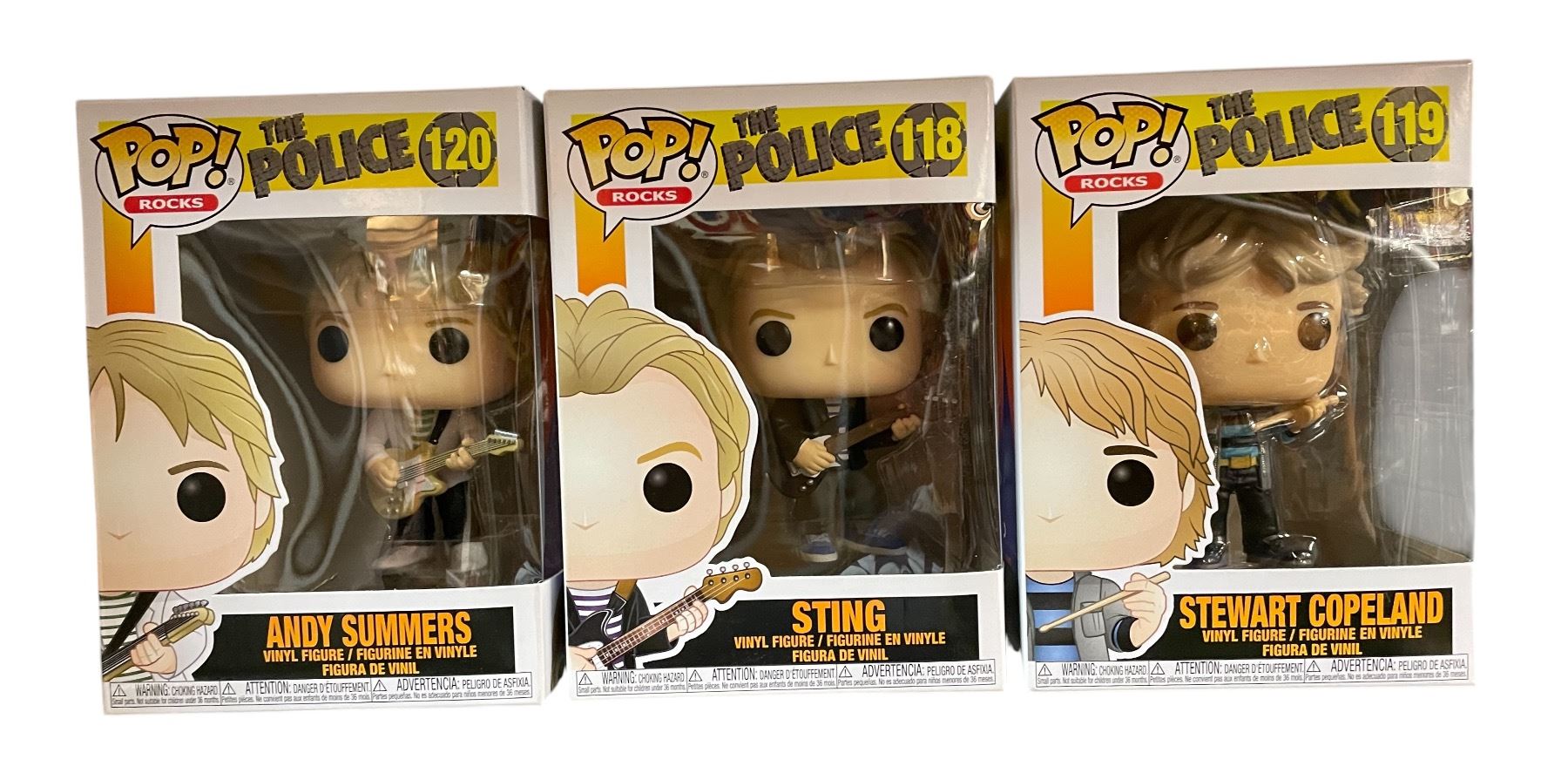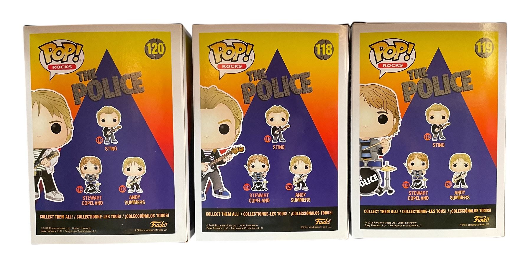 3 New The Police Funko Pops: Andy Summers #120, Sting #118, Stewart Copeland #119