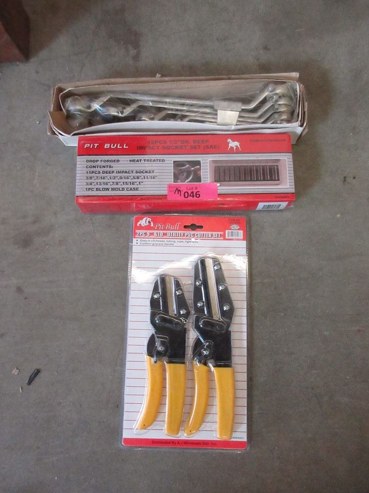 Ratchet spanner set, impact socket set & 2 piece PVC cutter