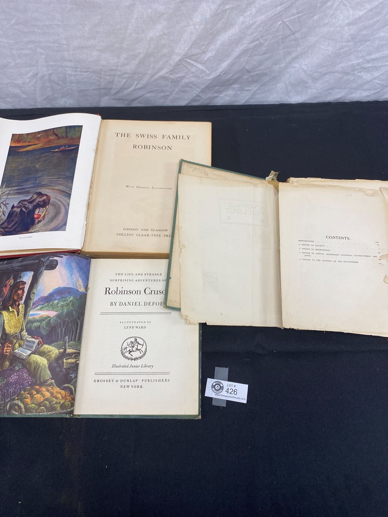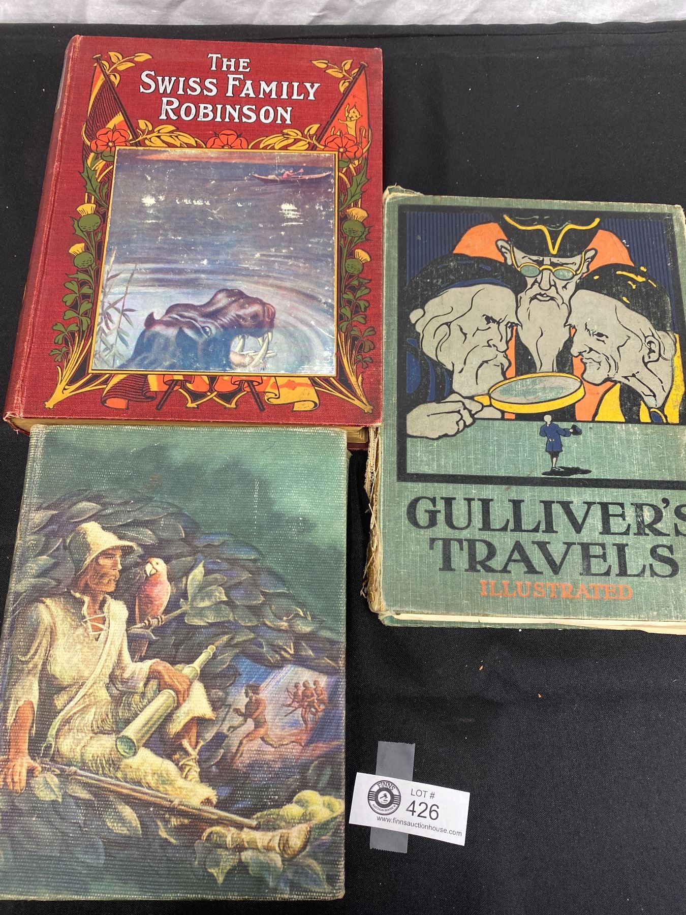 3 Old Hardcover Books 1907 The Swiss Family Robinson, 1946 Robinson Caruso, and Gullivers Travels in Rough Shape