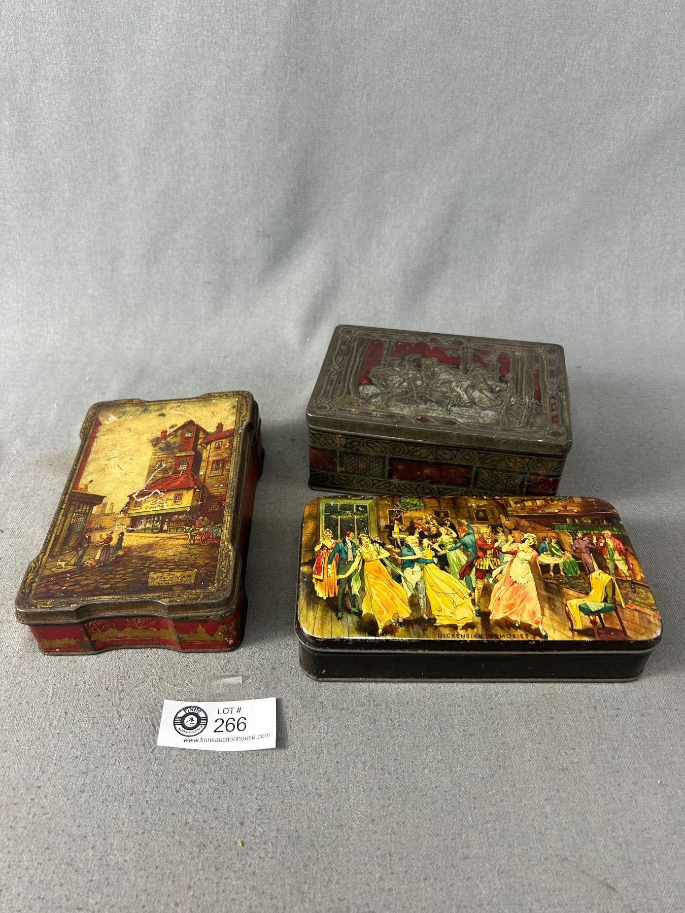 3 Old Toffee Tins w/ Lids. Approx. 4.25" x 6.25"