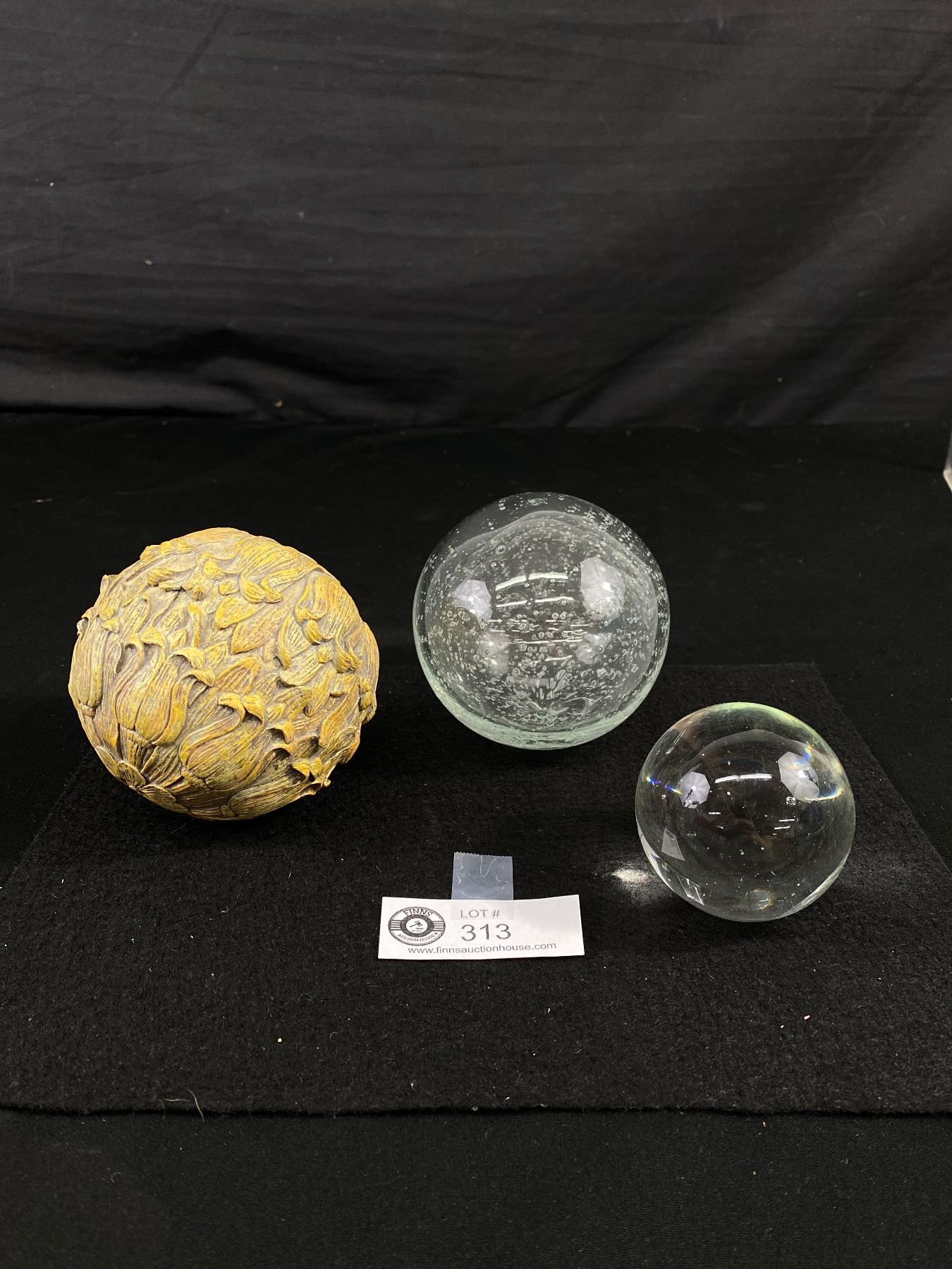 3 Orbes Glass Paperweight, Handblown Glass & Composition
