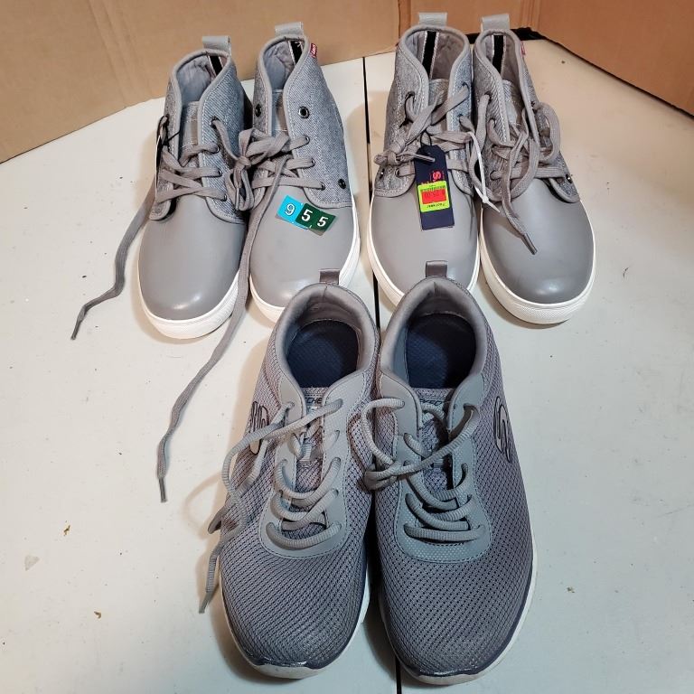3 PAIRS OF AS NEW SIZE 9.5 FOOTWEAR INCLUDING LEVI'S, AND SKETCHERS FLEX LITE