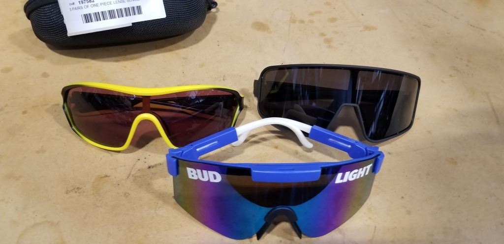 3 PAIRS OF ONE PIECE LENSE SUNGLASSES