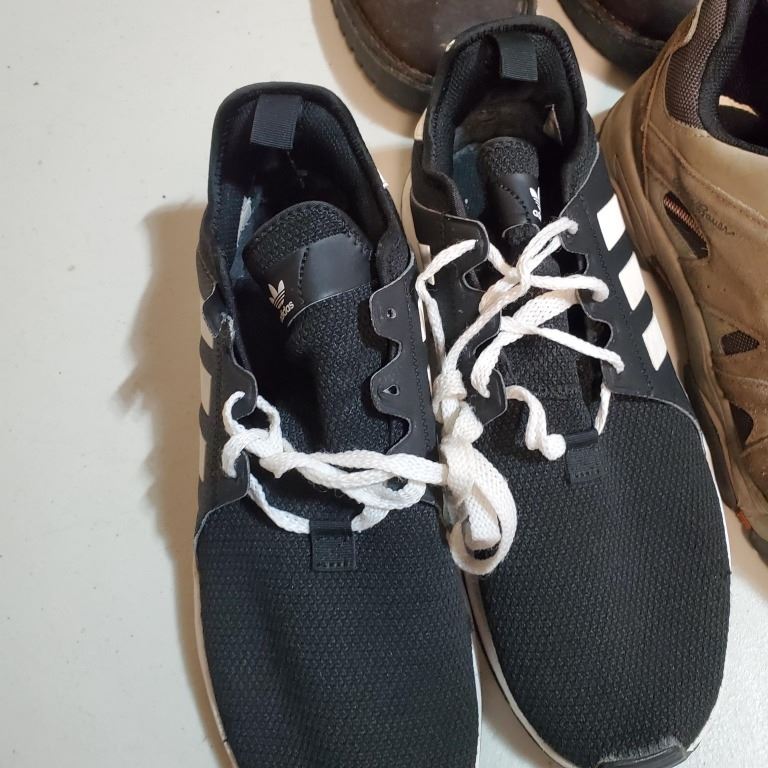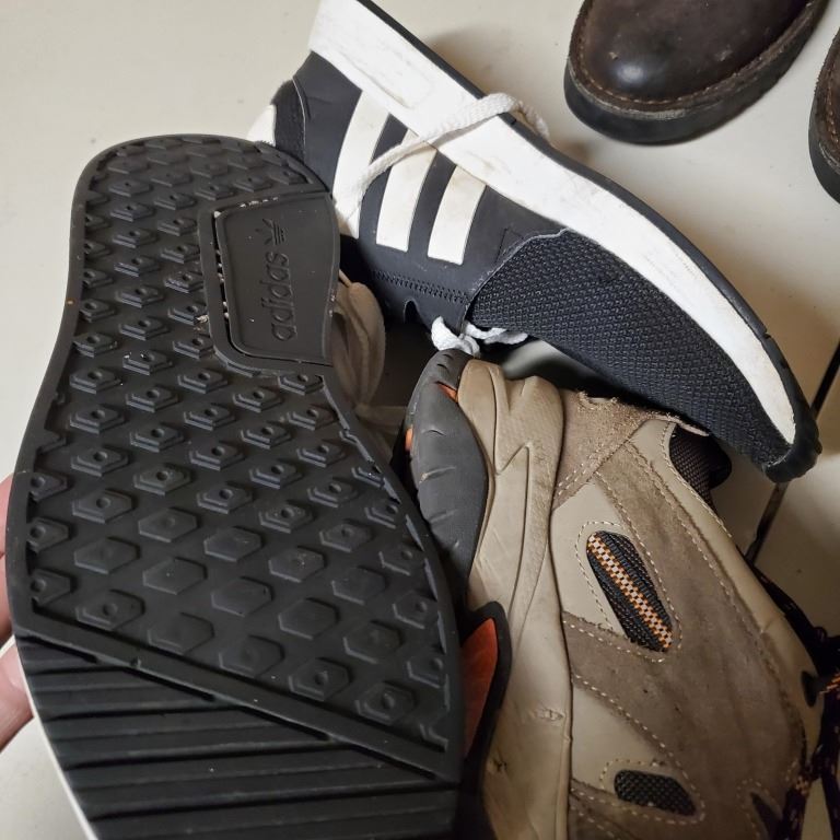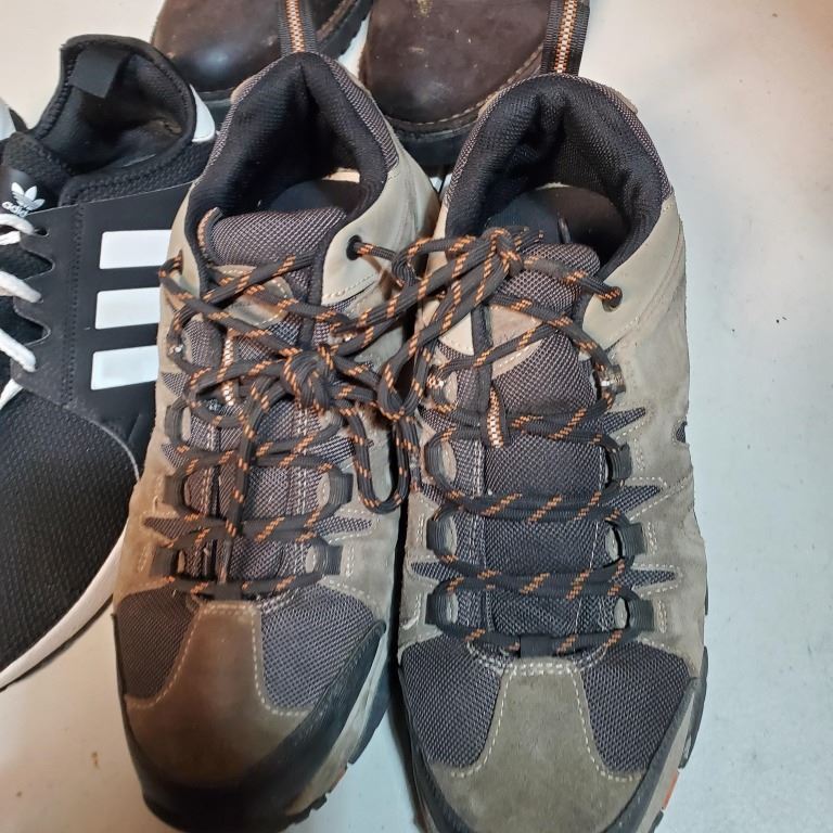3 PAIRS OF SIZE 11 FOOTWEAR INCLUDING ADIDAS, EDDIE BAUER AND SELECTED HOMME BOOTS