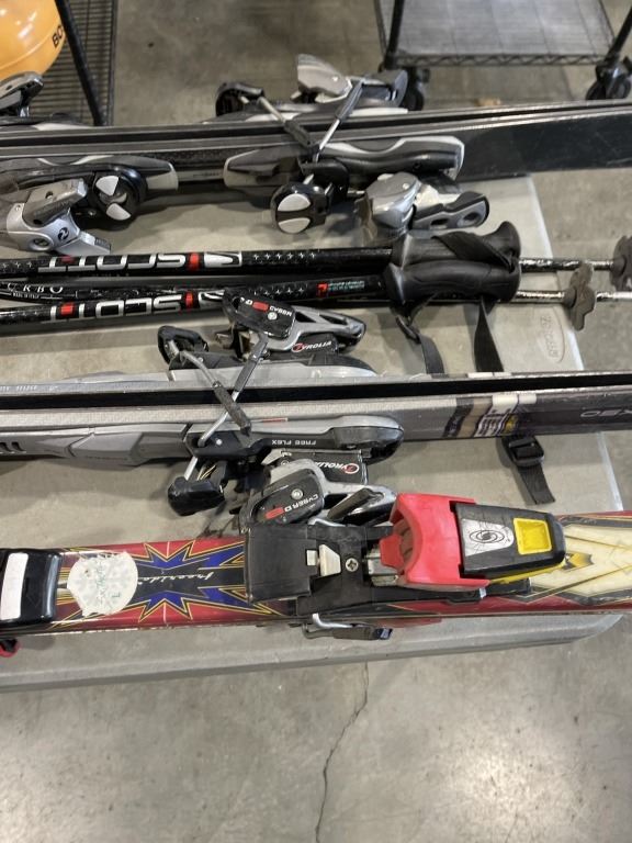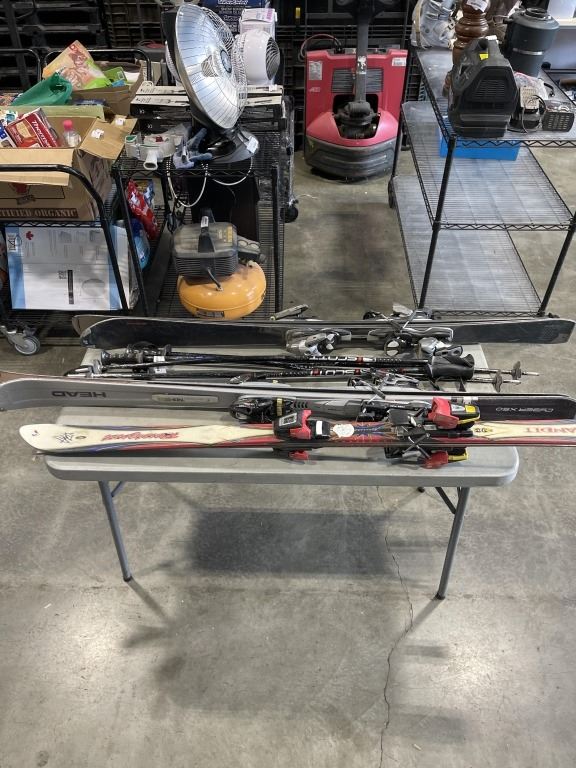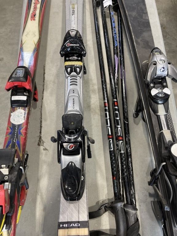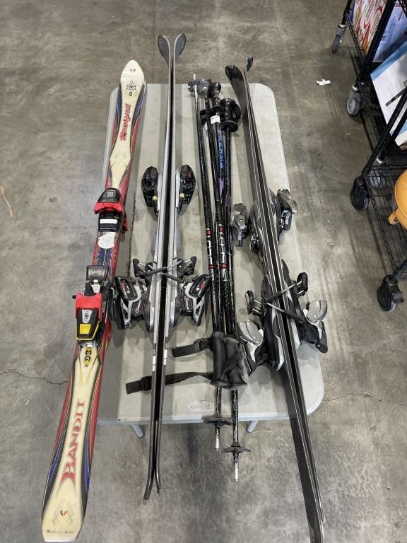 3 PAIRS OF SKIS AND 2 SETS OF POLES