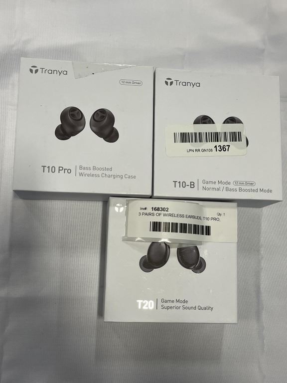 3 PAIRS OF WIRELESS EARBUDS, T10 PRO, T20, AND T10-B