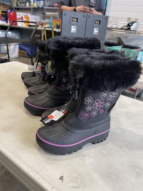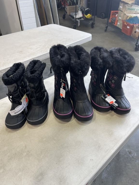 3 PAIRS OF YOUTH AND TODDLER SNOW BOOTS, SIZE 1, 4 AND 13