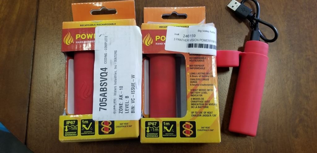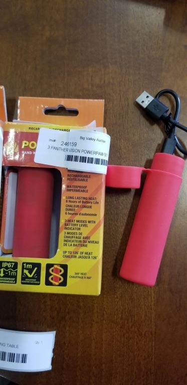3 PANTHER VISION POWERPAW 501 RECHARGABLE ELECTRIC HAND WARMERS - TESTED WORKING, TOTAL RETAIL $72