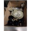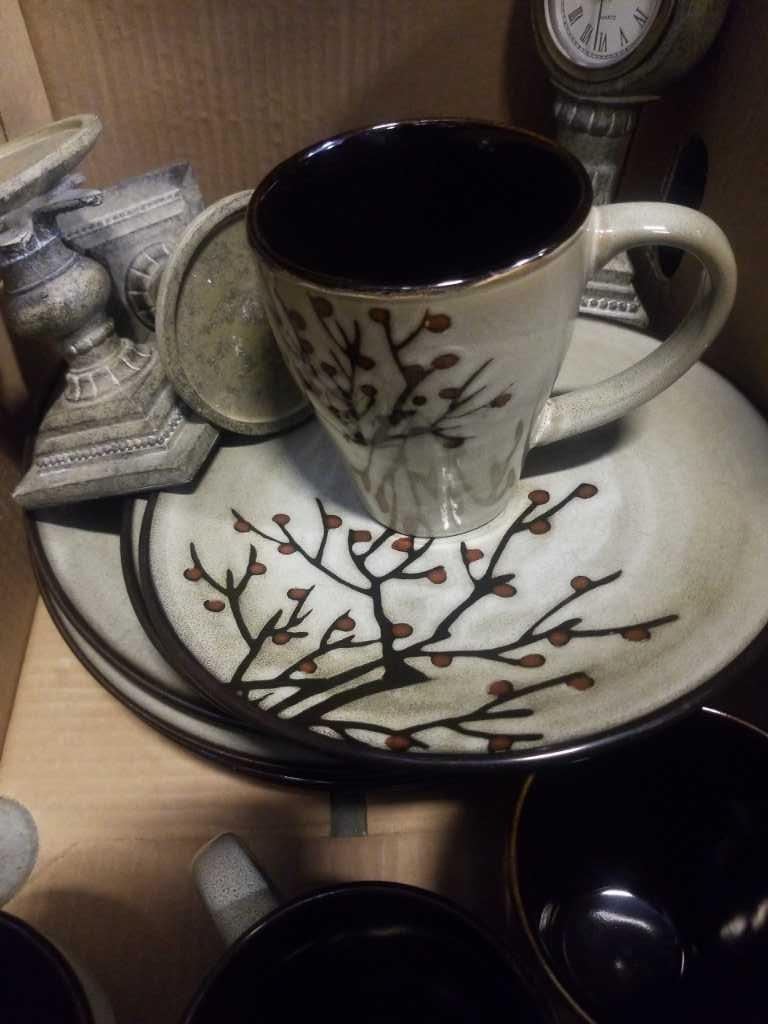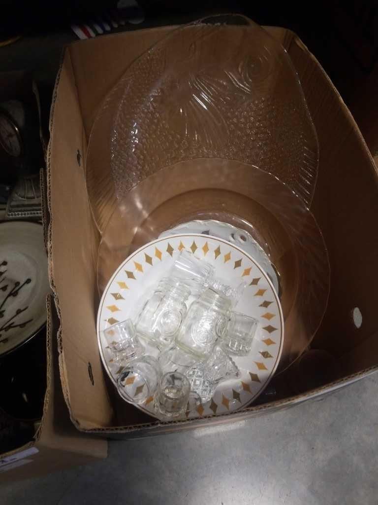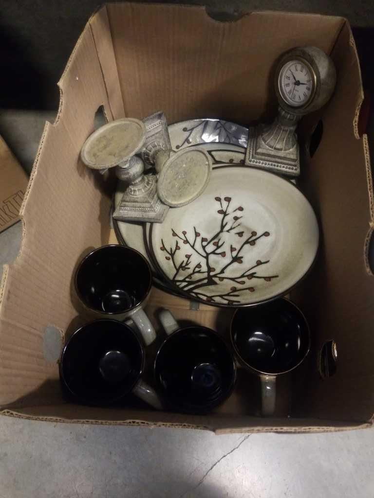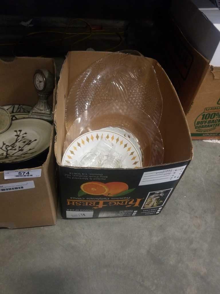 3 PC 4 PLACE SETTING SET GIBSON ELITE DISH SET AND BOX OF ASSORTED SERVING PIECES