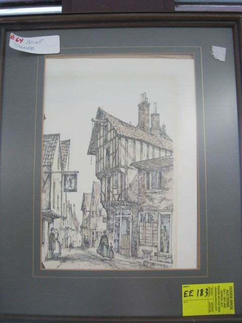 3 PICTURES, 1 SIGNED PRINT, 1 ETCHING & 1 SHIP PICTURE