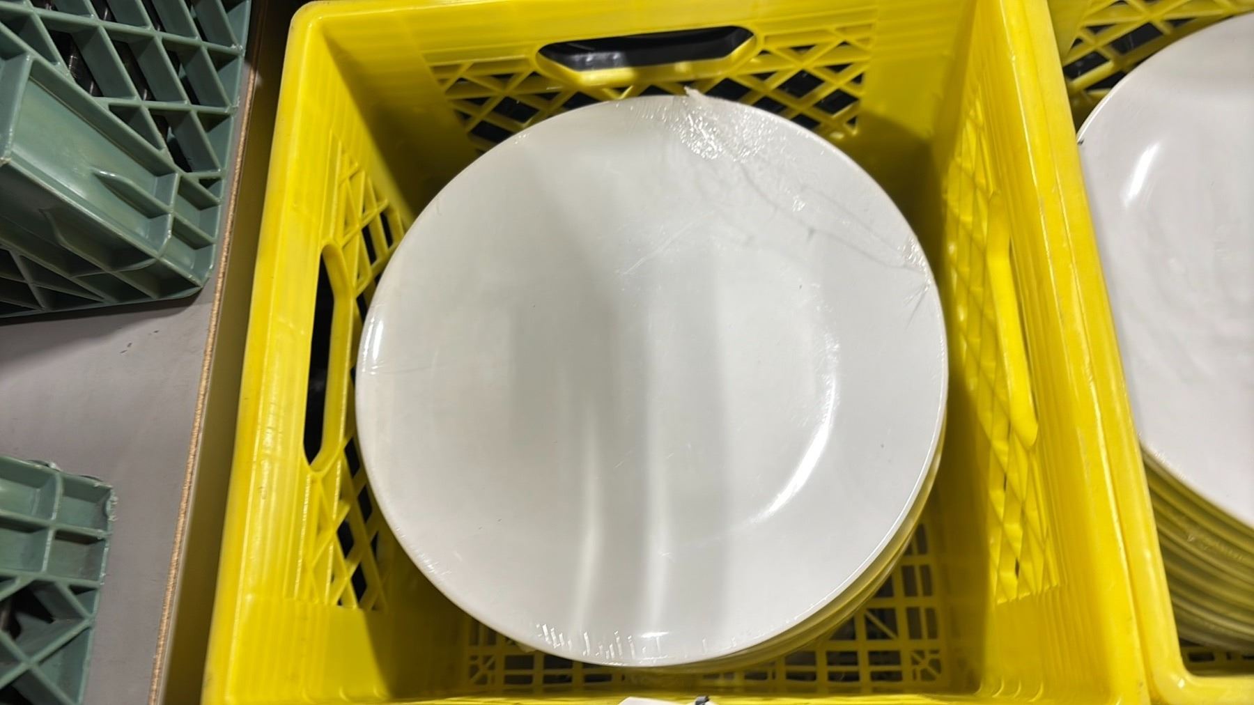 3 PLASTIC CRATES OF 11  ROUND COMMERCIAL RESTAURANT PORCELAIN DINNER PLATES *CRATES INCLUDED*