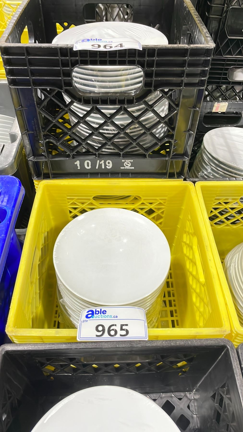 3 PLASTIC CRATES OF 9" WHITE COMMERCIAL RESTAURANT SIDE PLATES *PLASTIC CRATES INCLUDED* ( APPROX. 20 PLATES PER CRATE )