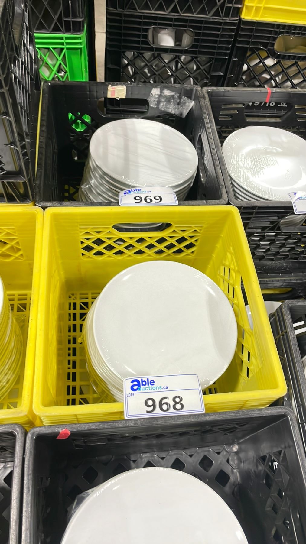 3 PLASTIC CRATES OF 9" WHITE COMMERCIAL RESTAURANT SIDE PLATES *PLASTIC CRATES INCLUDED* ( APPROX. 20 PLATES PER CRATE )