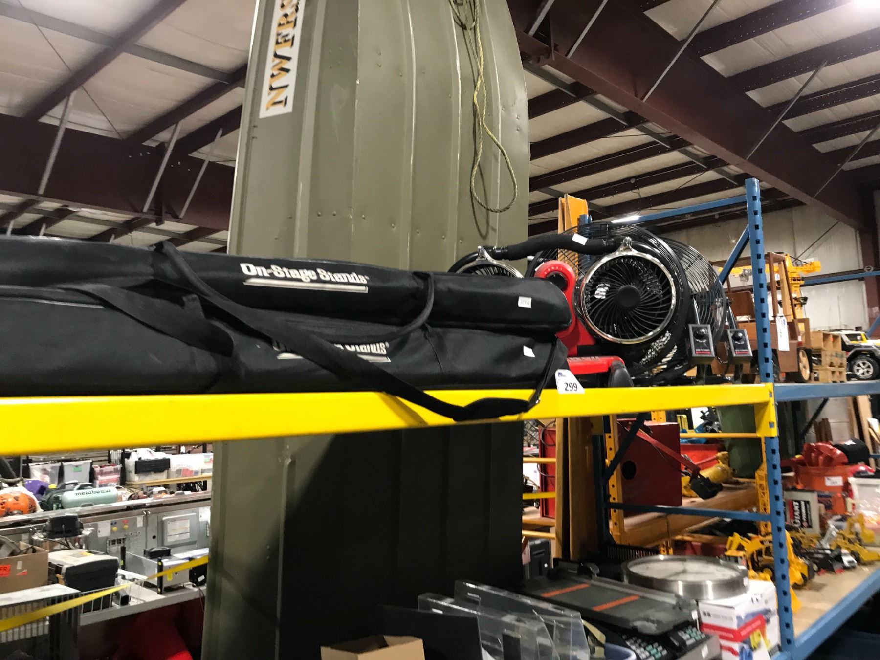 3 PORTABLE HONEYWELL COMMERCIAL FANS, AND 2 ON-STAGE STANDS IN CARRY BAGS