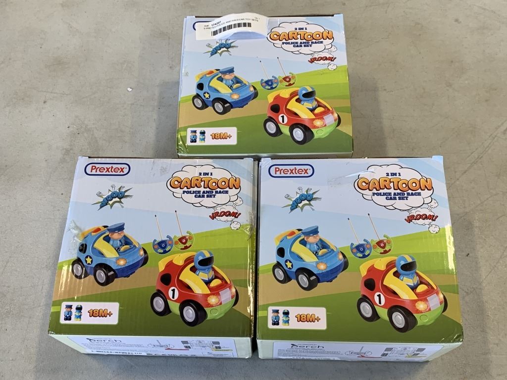 3 PRETEX POLICE AND RACECAR TOY SETS