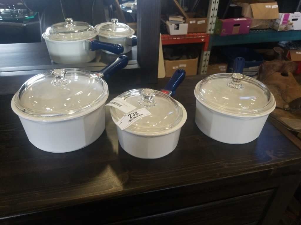 3 PRINCESS HOUSE POTS WITH LIDS AND REMOVEABLE HANDLES