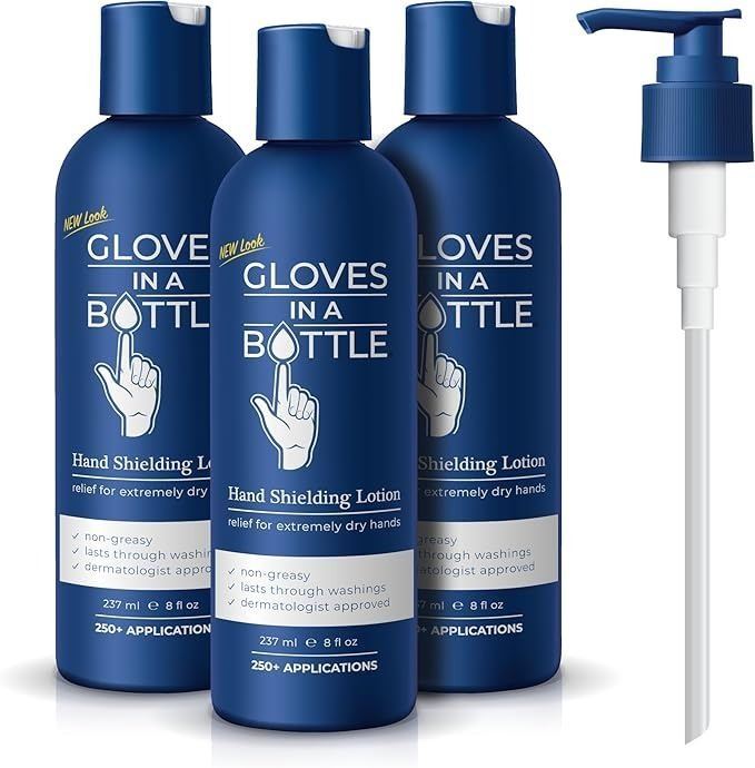 - Gloves In A Bottle Shielding Lotion - Great for Dry Itchy Skin! Grease-less and Fragrance Free! Second Skin for Hands & Body (8oz 3 Pack) with Pump