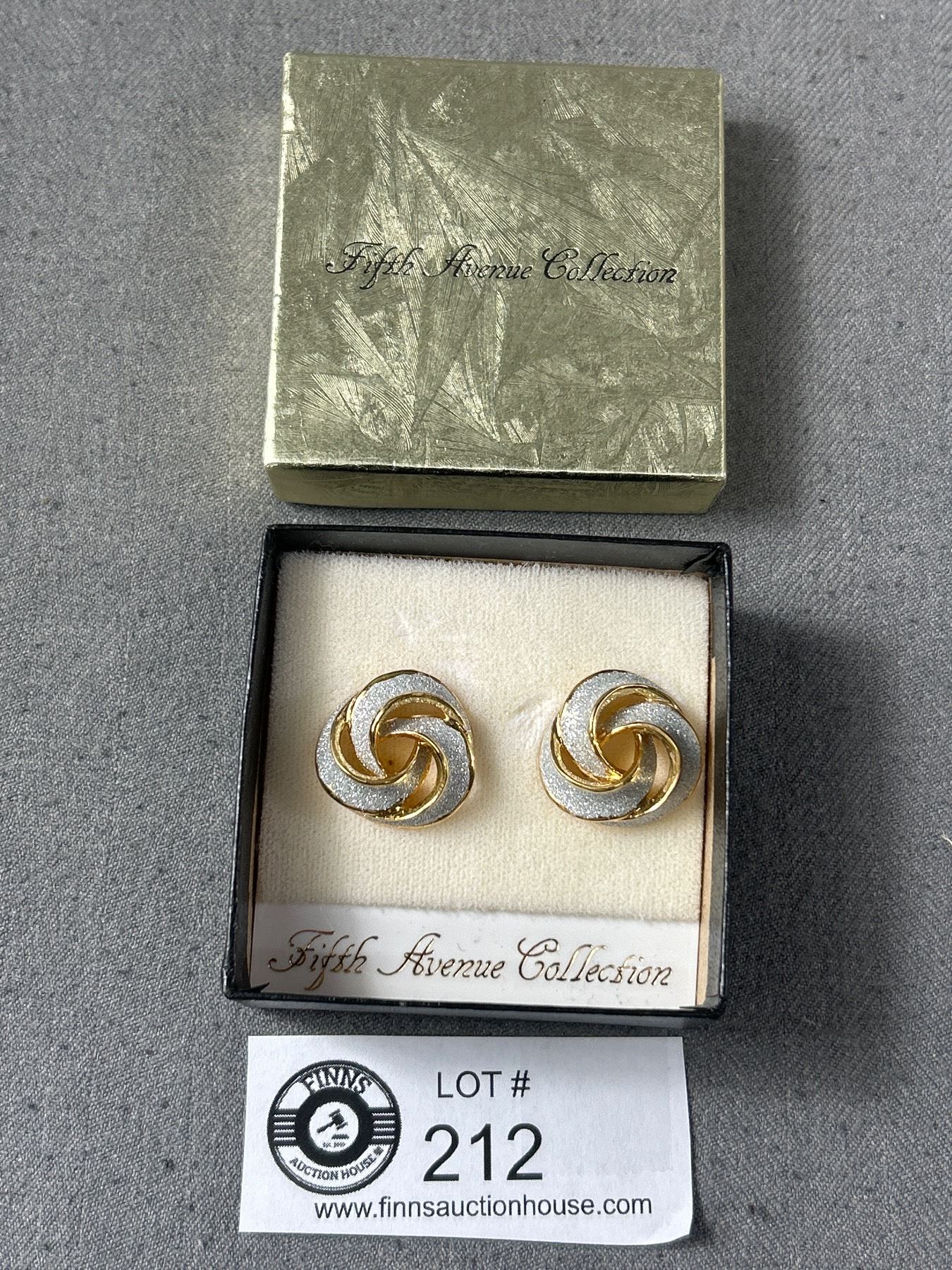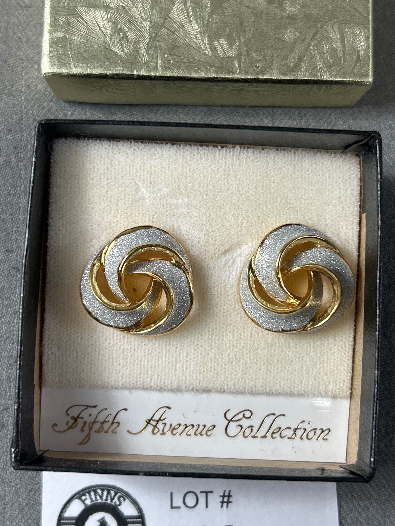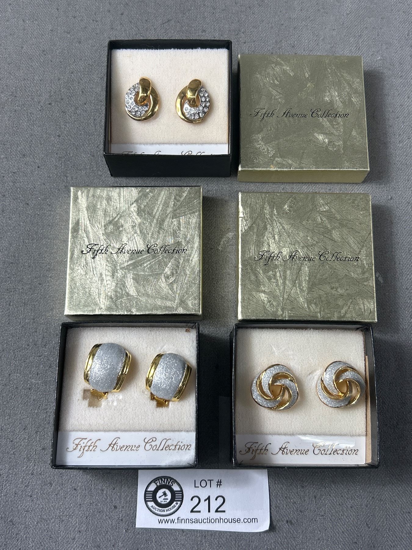 3 Pairs Of "Fifth Avenue" Earrings In Original Box. 1960's-70's