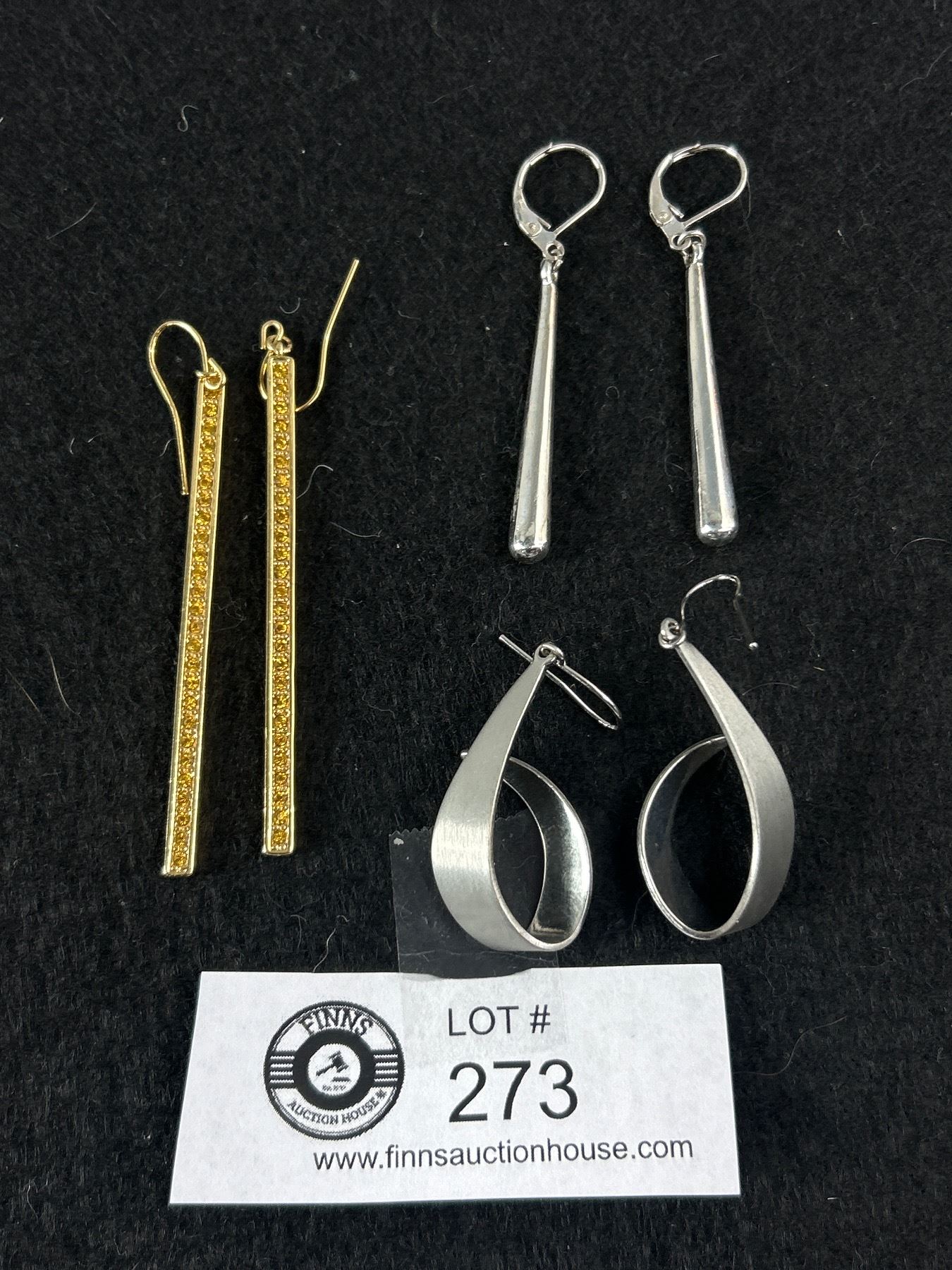 3 Pairs Of Silver & Gold Plated Dangle Earrings In Good Condition