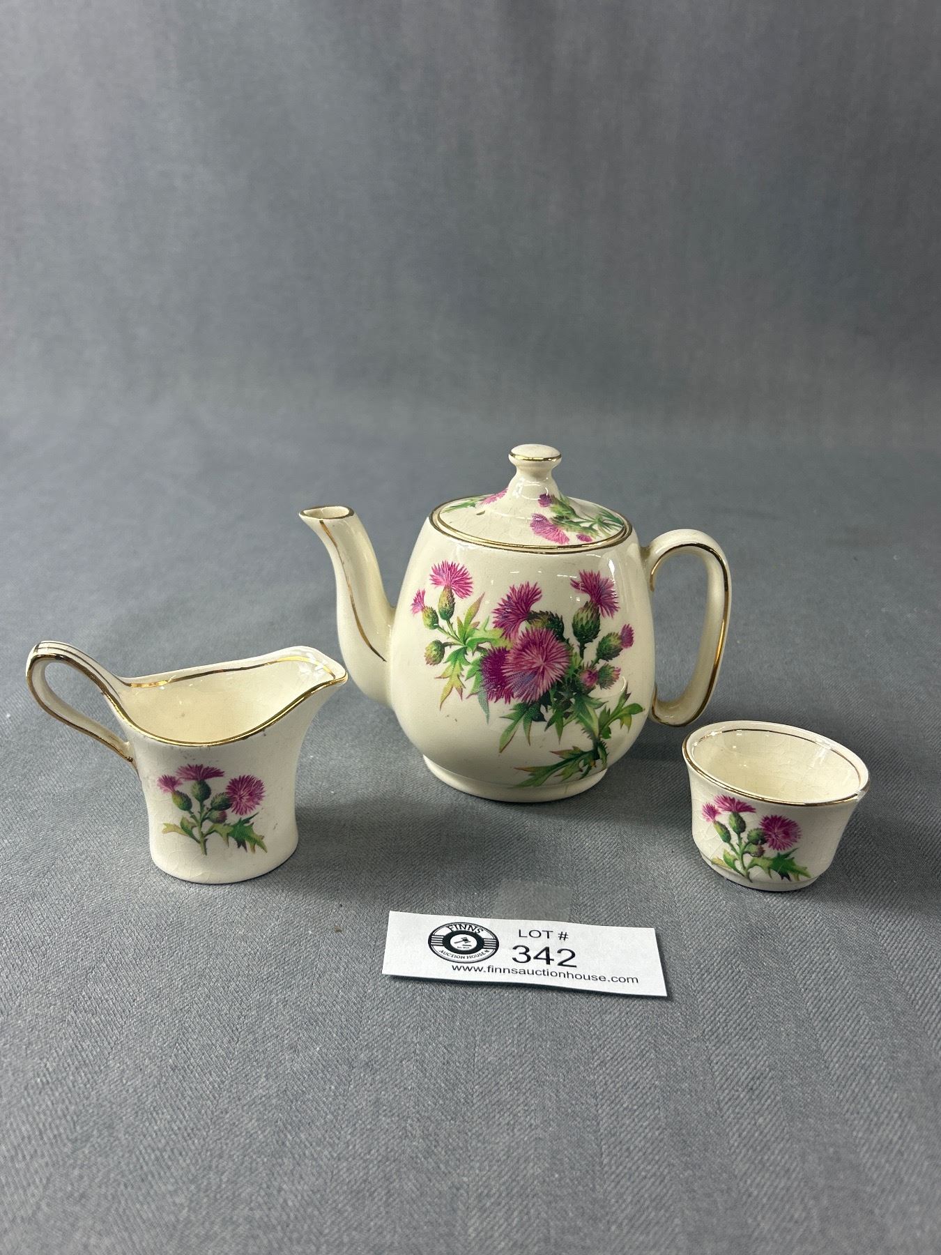 3 Pc Royal Winton Miniature Teaset. 1930's "Scottish Thistle"