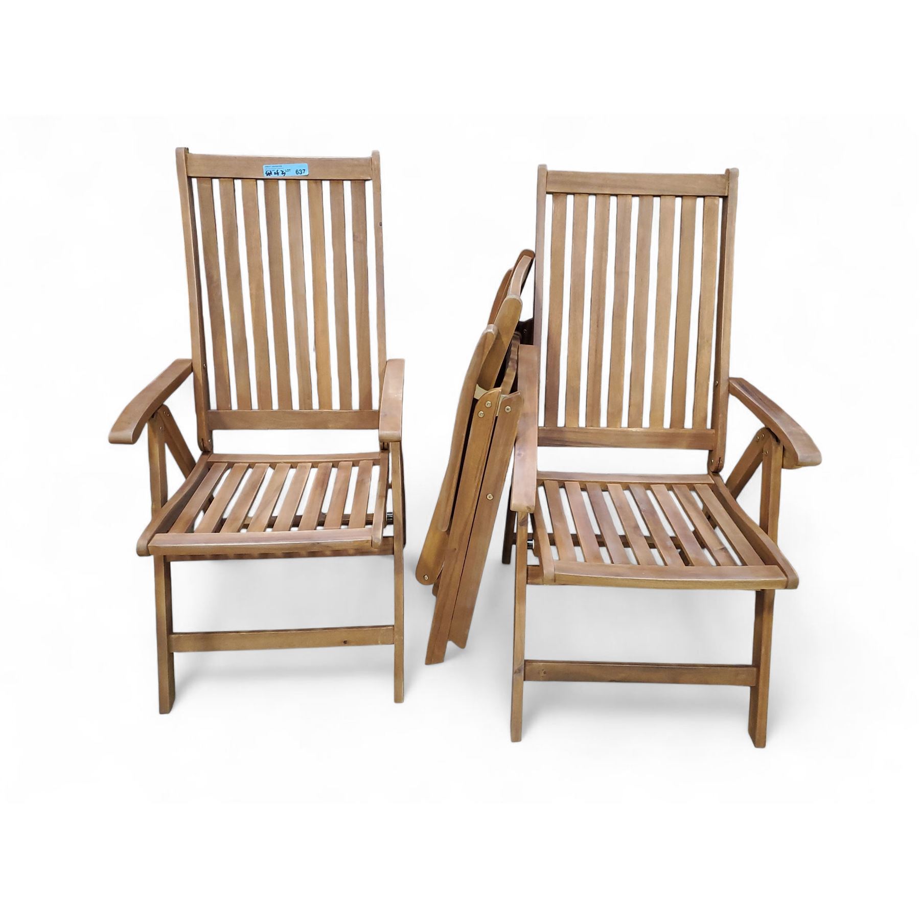 3 Pcs Slatted Wooden Folding Patio Armchairs