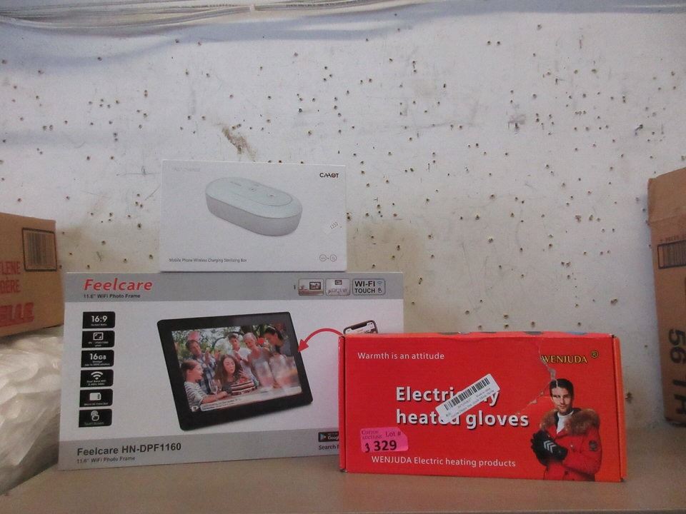 Electric heated gloves, Sterilizer box, and WiFi Photo frame.