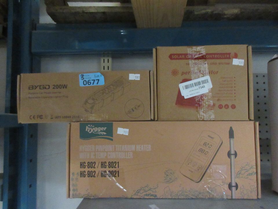 Hygger pinpoint titanium heater, solar charge controller & a portable car power inverter