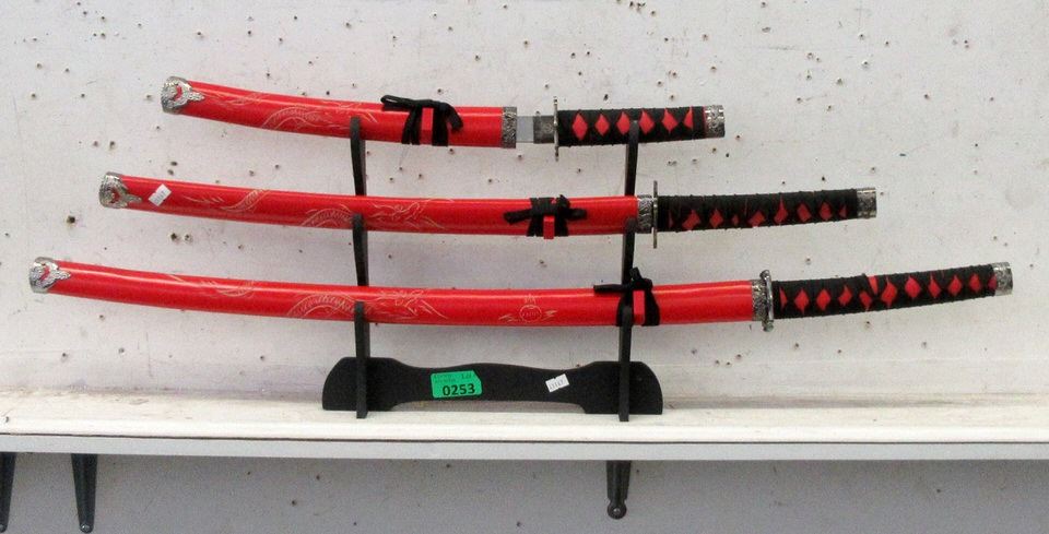 3 Piece Replica Samurai Sword Set on Stand