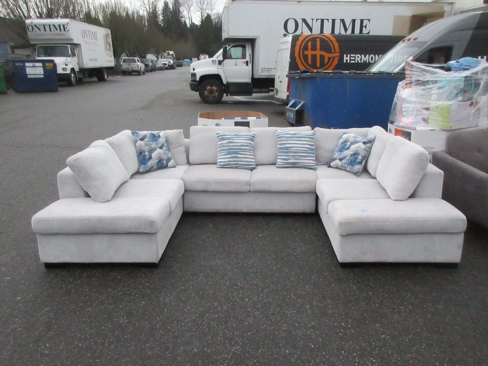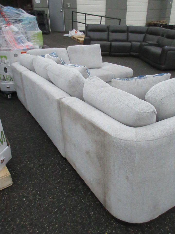 80" deep x 126" total length. Has all cushions and legs. Needs cleaning.