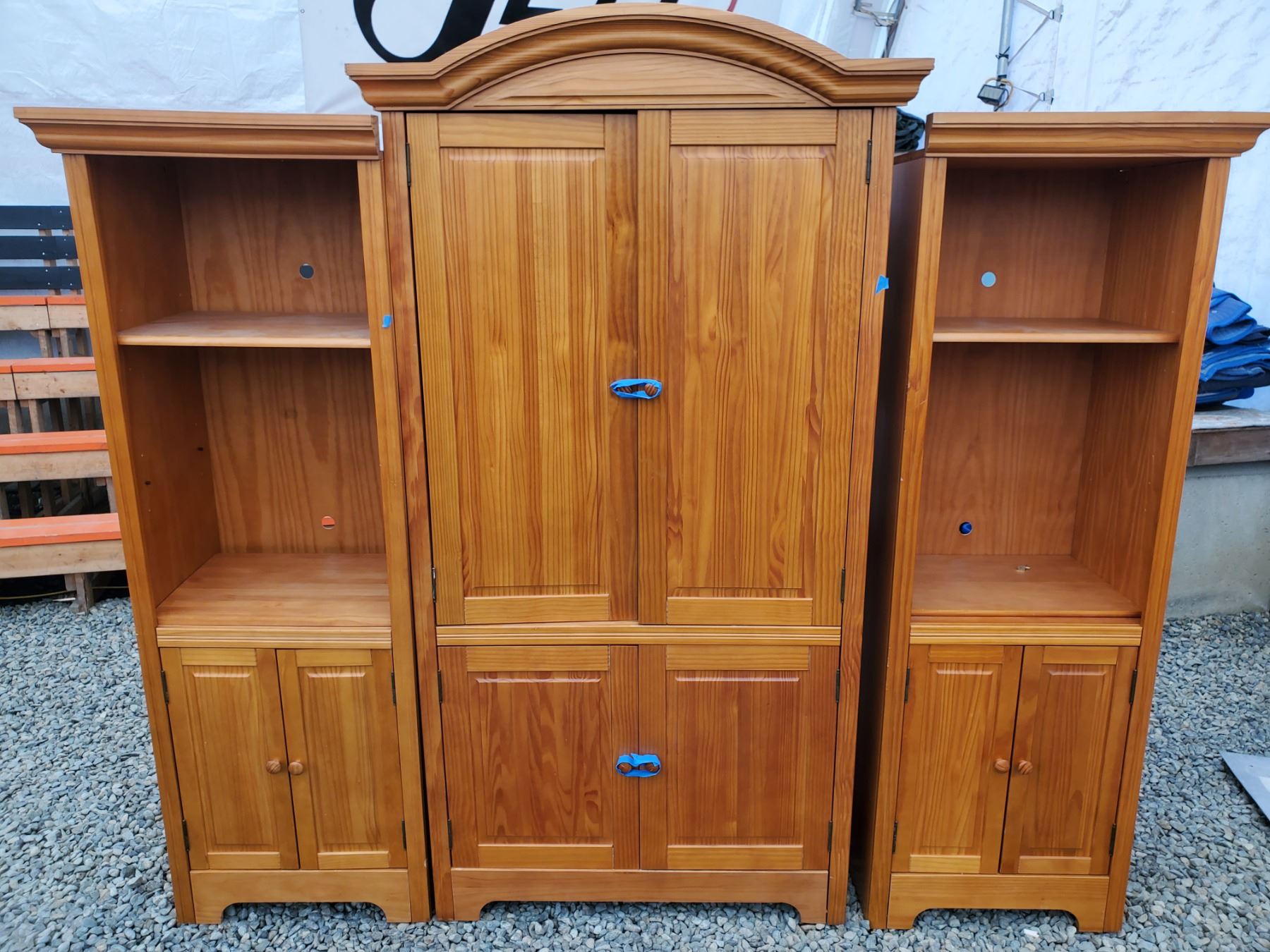 3 Piece large pine bookstand - Items have not been tested - Viewing Recommended- 17% Buyer Fee. Payment Processed through Live Auction World ( Visa or Master Card ) pick up Saturday or Tuesday