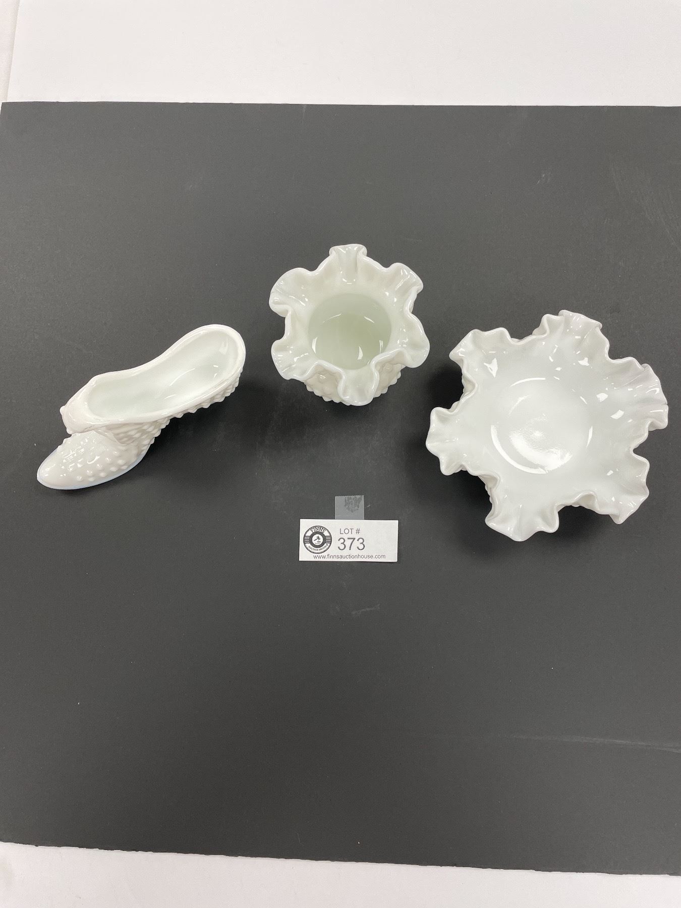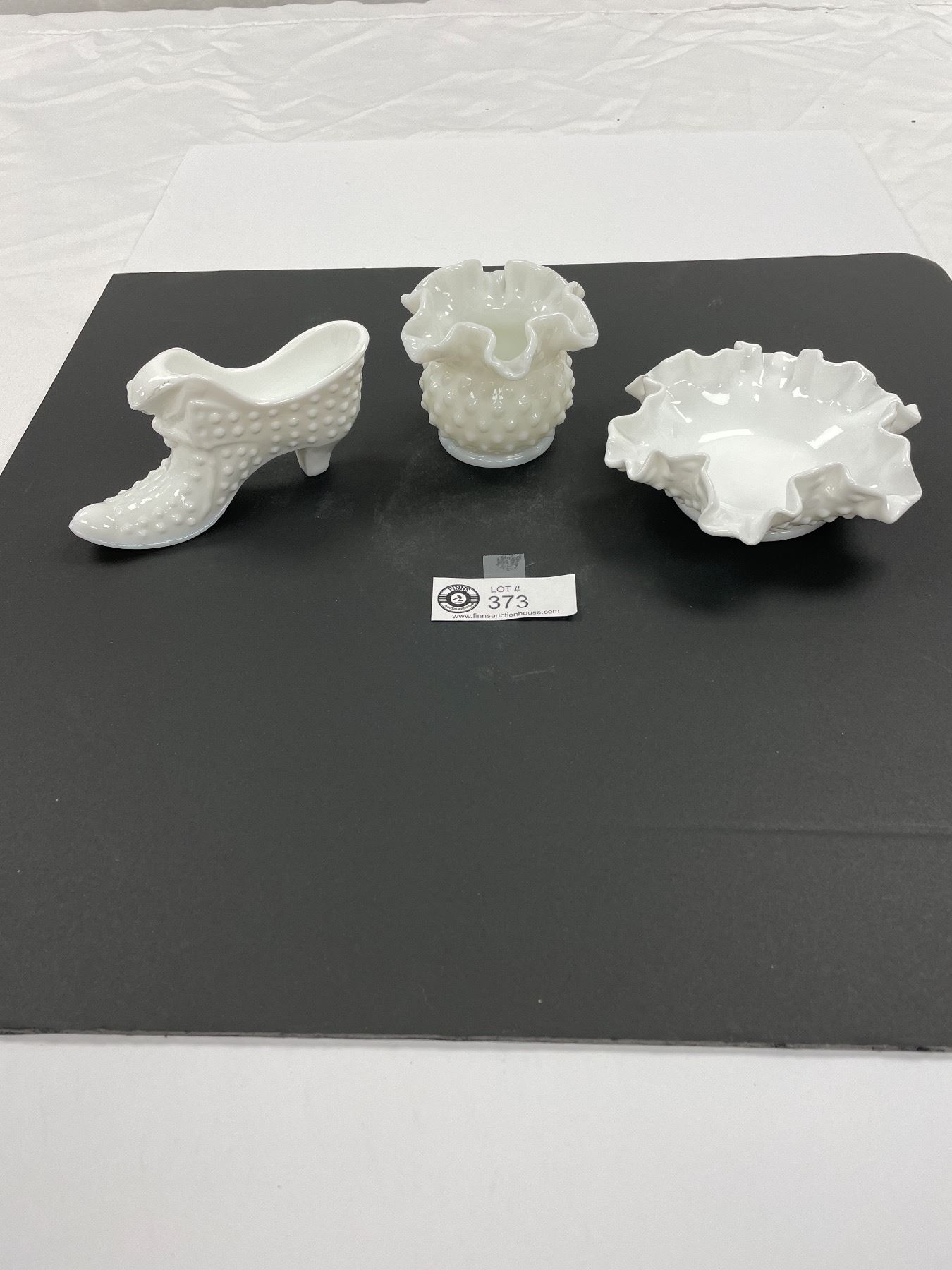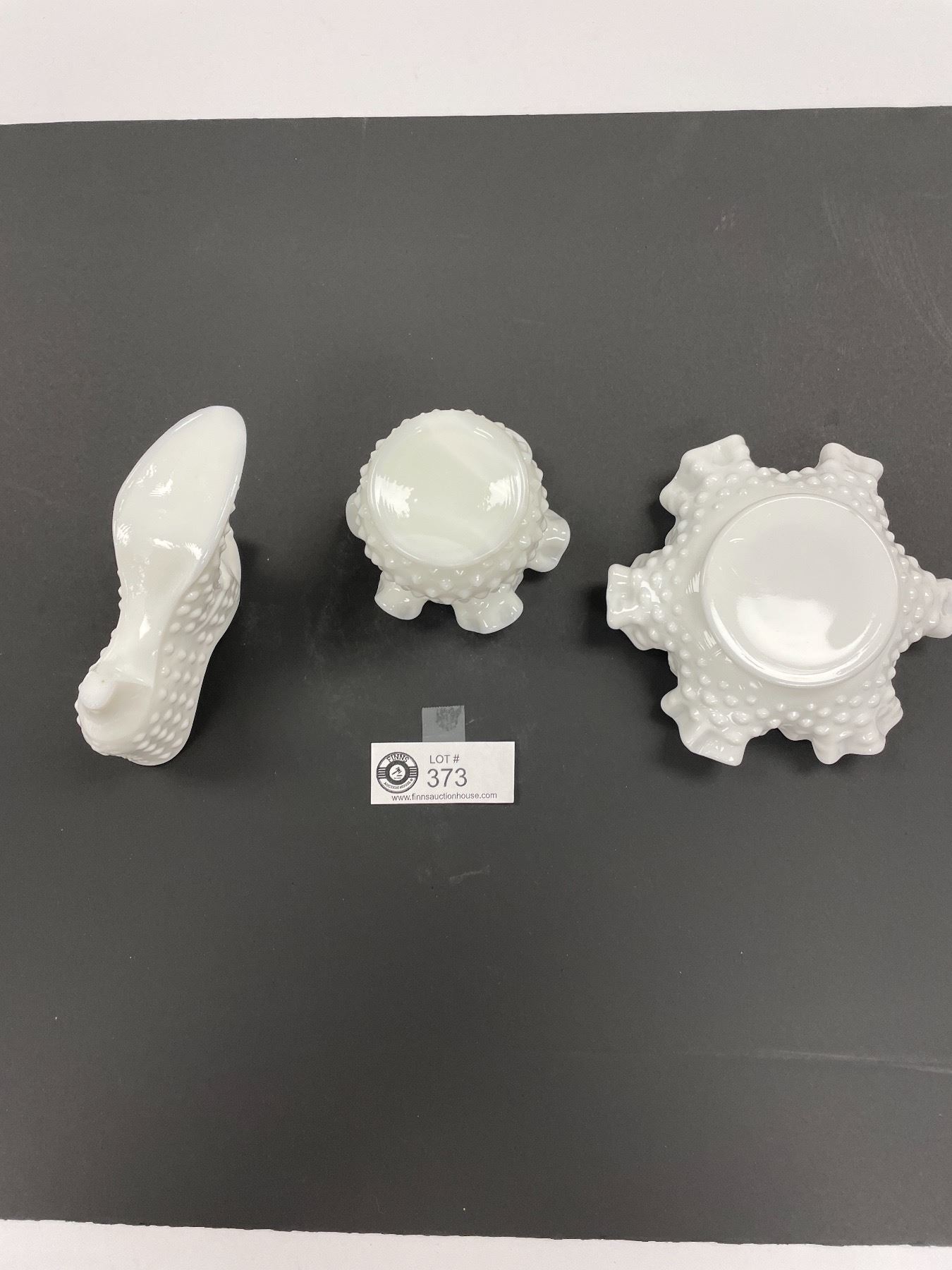 3 Pieces Vintage Hobnail Milk Glass in Excellent Condition