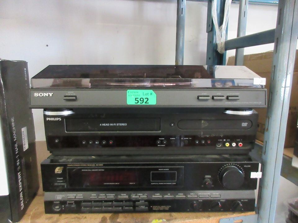 Sansui stereo receiver, Sony turntable, Philips DVD/VHS player