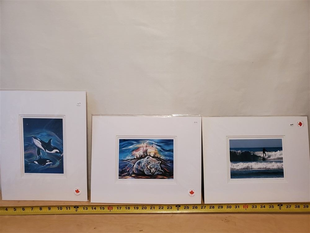 3 Prints "Killer whales" - "Sleepy Bear" - "Surfing" - Most Items have not been tested - Viewing Recommended- 17% Buyer Fee. Payment Processed through Live Auction World ( Visa or Master Card ) pick up Wednesday