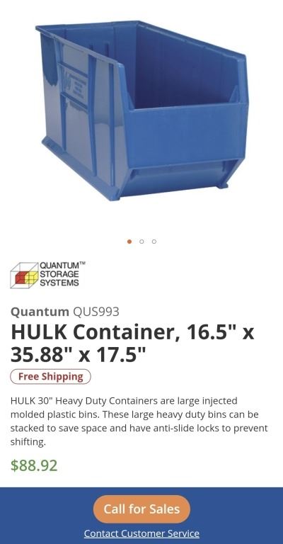 3 QUANTUM QUS993 HULK CONTAINERS RETAIL $89 EACH 16.5"X35.88"X17.5"