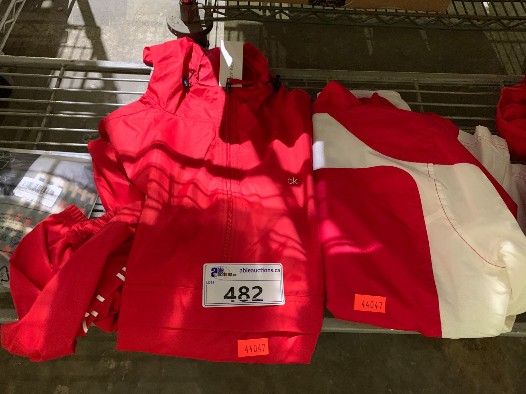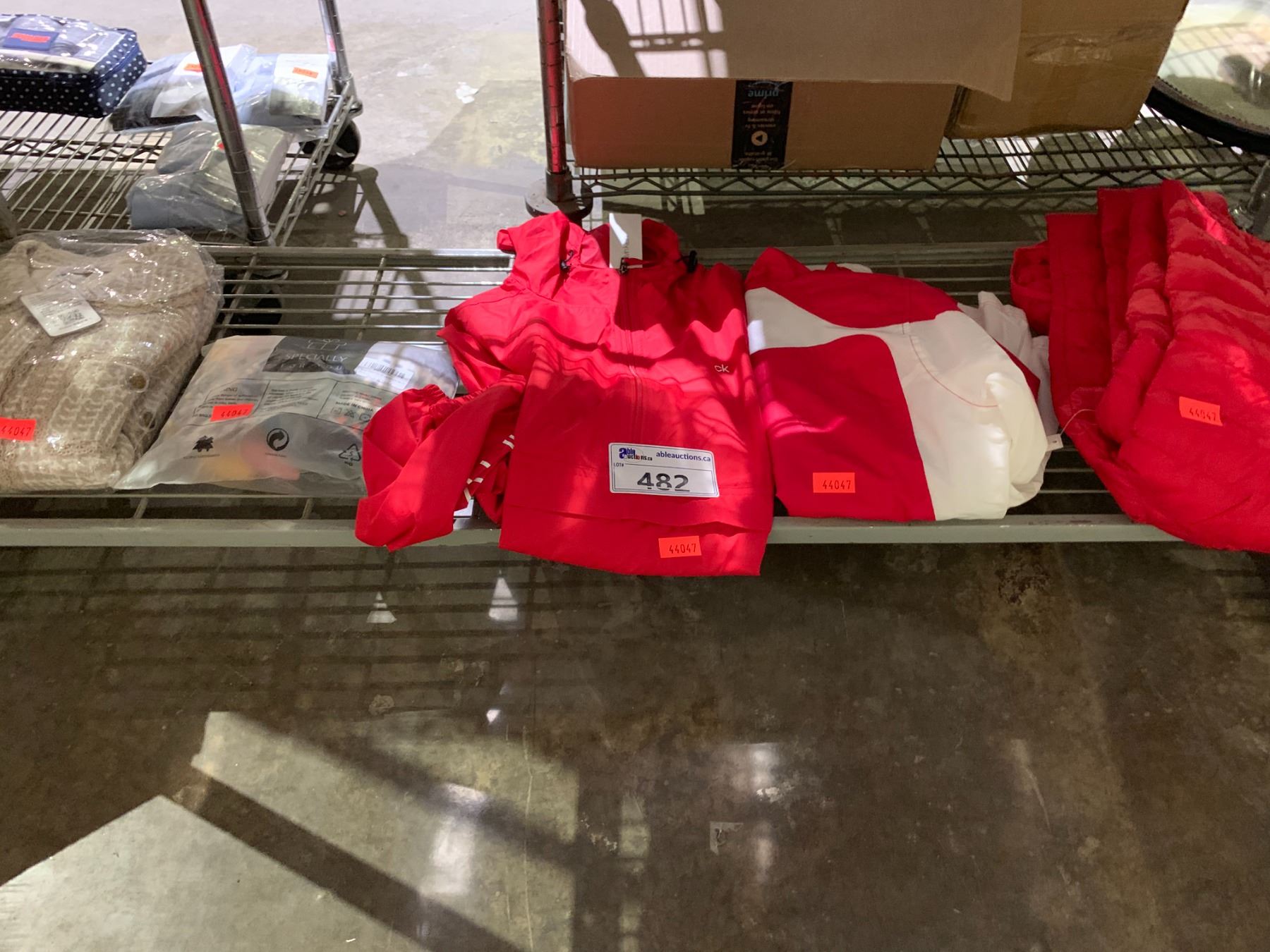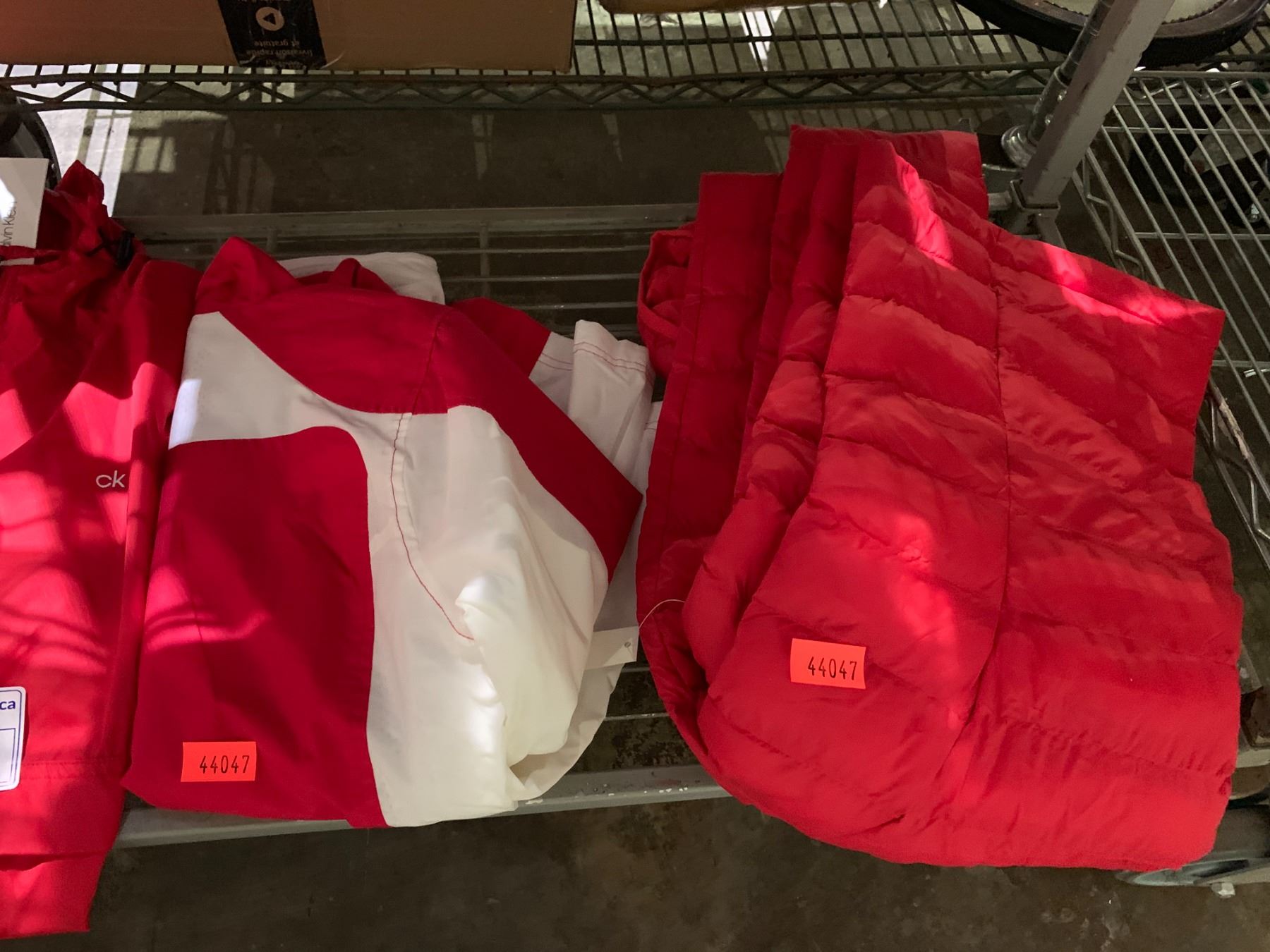 3 RED JACKETS (AMAZON AND CALVIN KLIEN) WOMENS WINTER SOCKS AND MORE