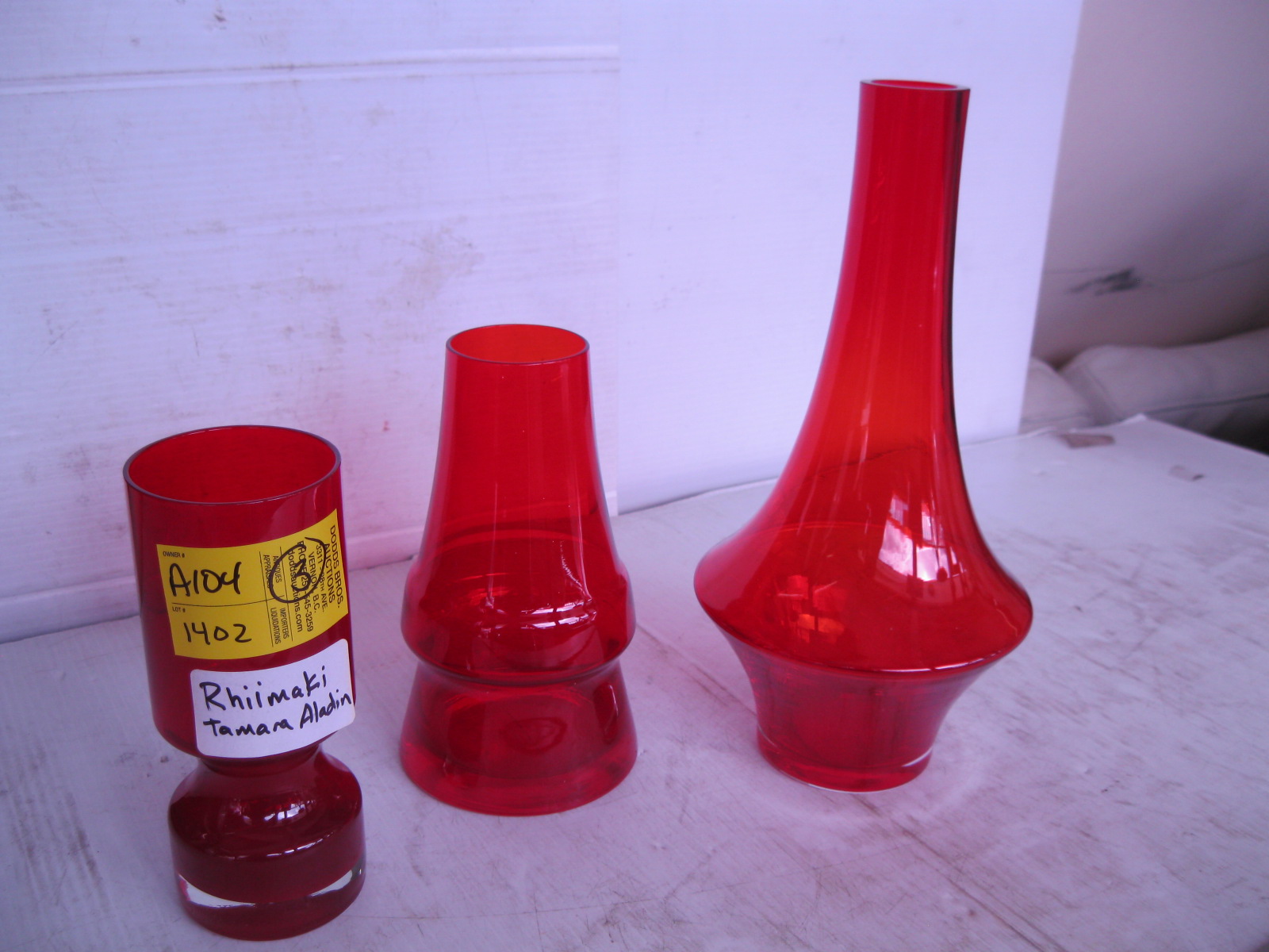 3 RED RHILMAKI TAMARA ALLADIN GLASS VASES