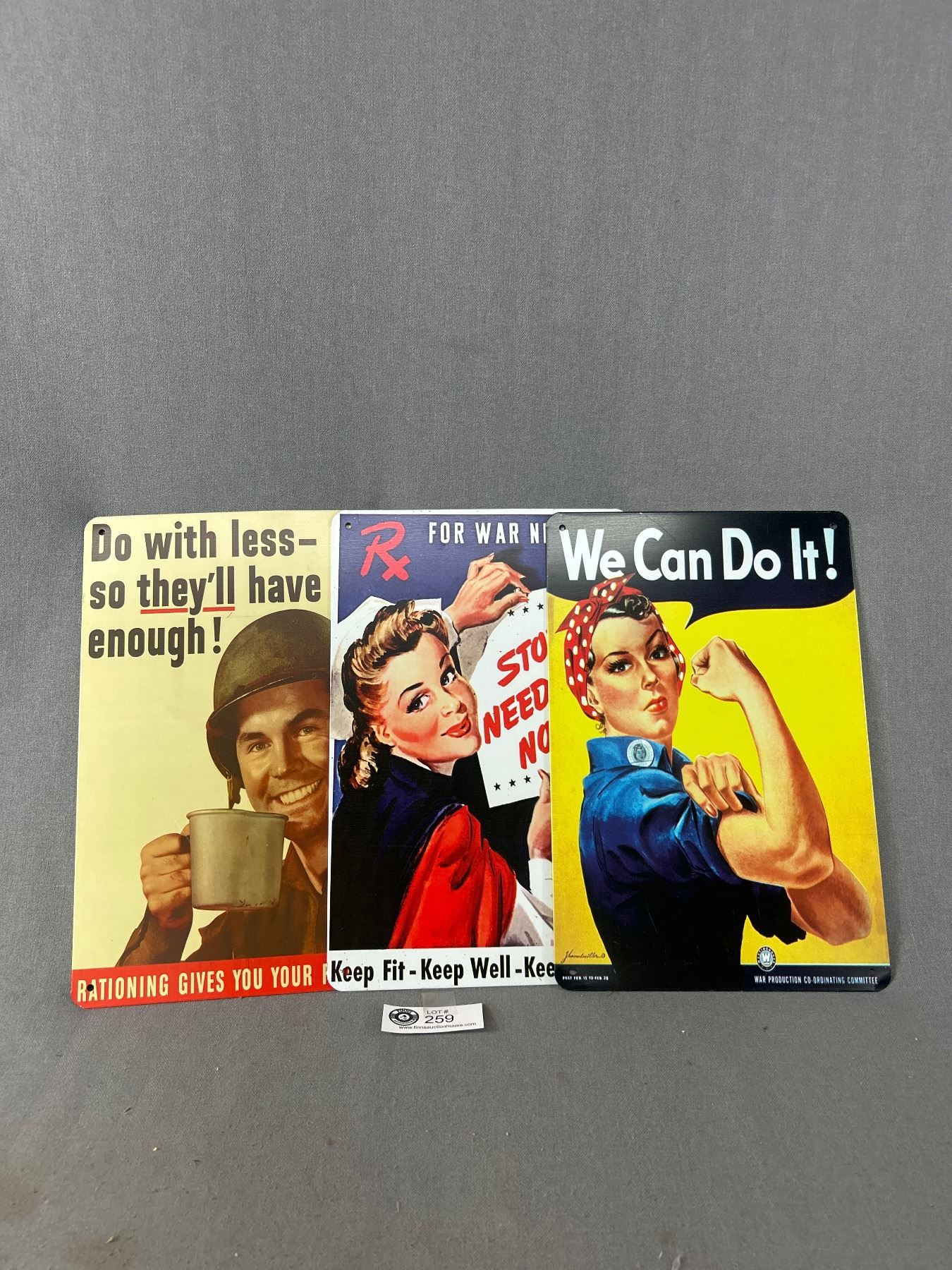 3 Reproduction War Time Tin Signs - Approx. 8" x 11.75"
