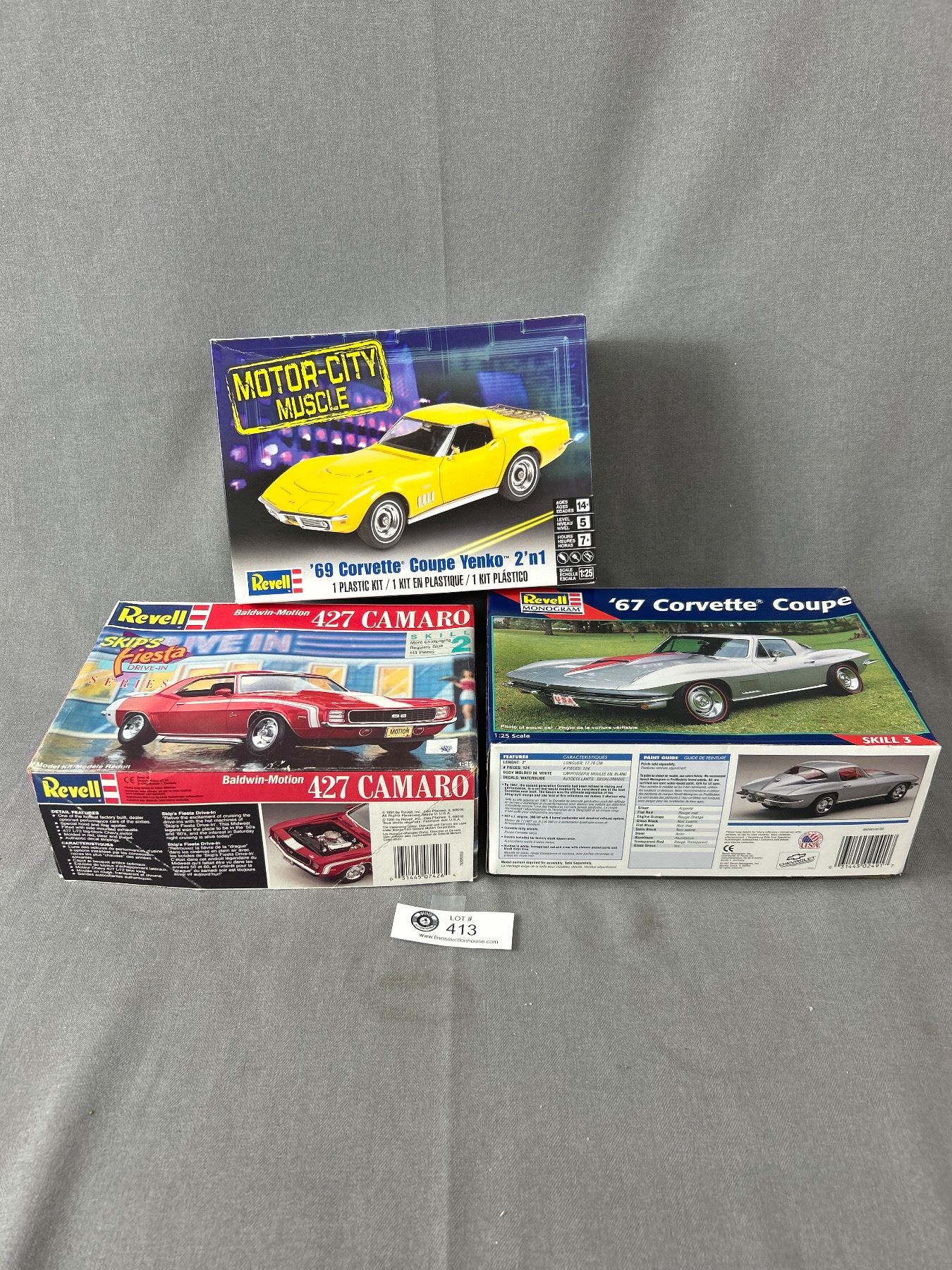 3 Revell Model Kits - 2 Corvettes & 1 Camero