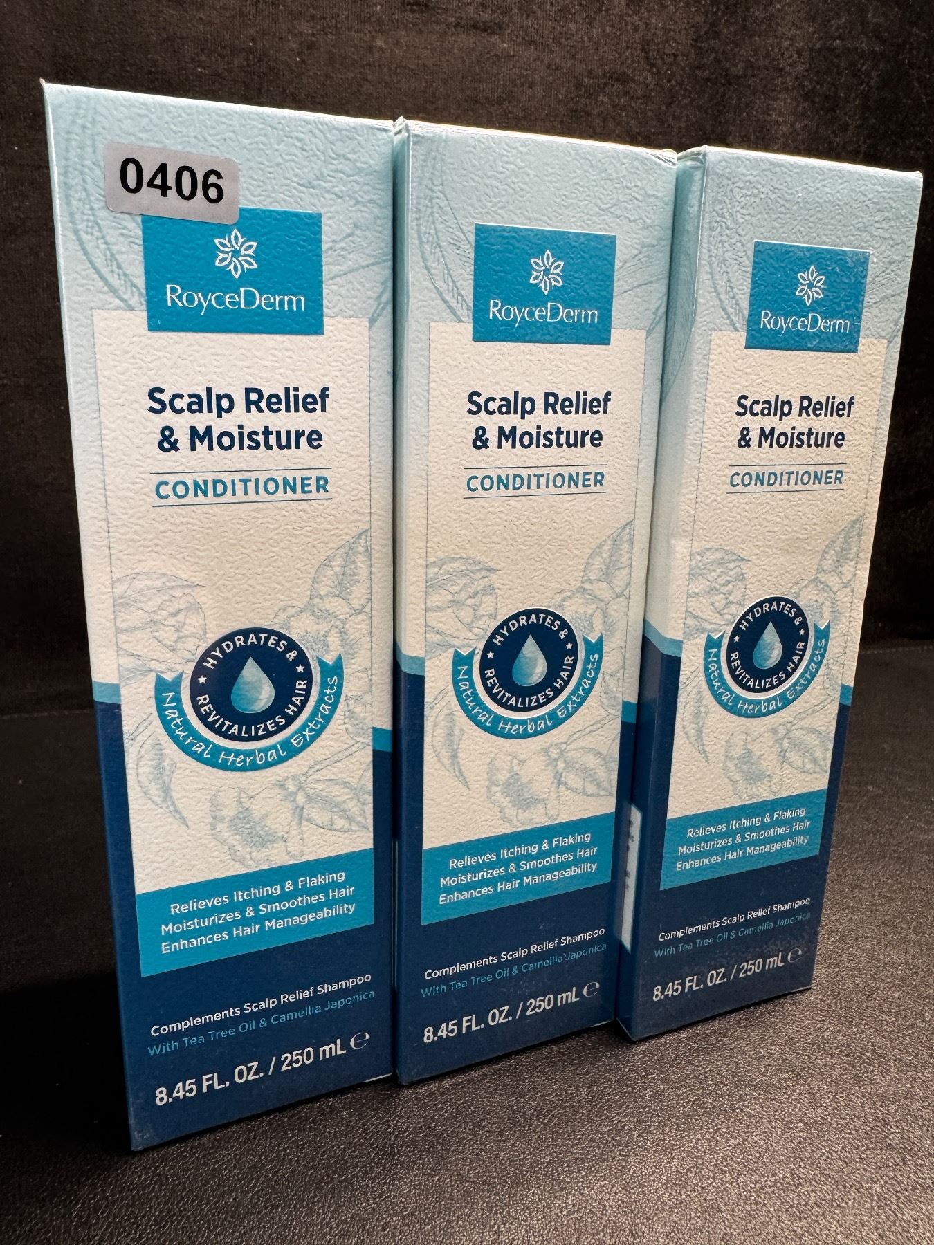 3 RoyceDerm Scalp Relief & Moisture Conditioners (250ml) Moisturizes & Relieves Itching/Flaking; Ne
