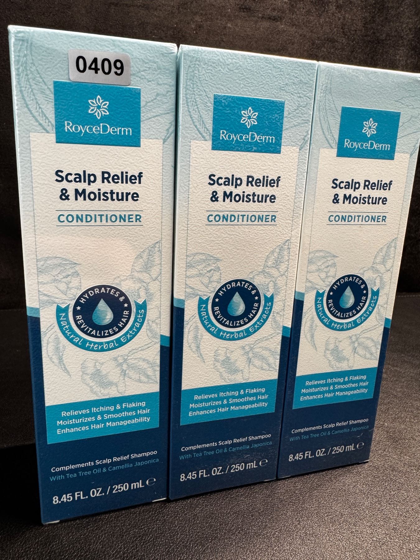 3 RoyceDerm Scalp Relief & Moisture Conditioners (250ml) Moisturizes & Relieves Itching/Flaking; Ne