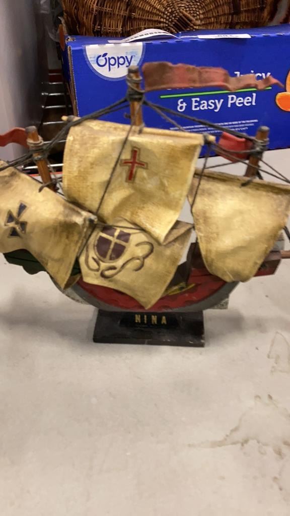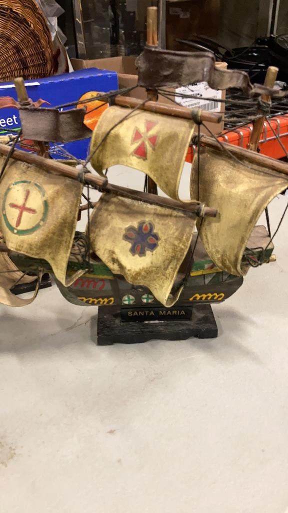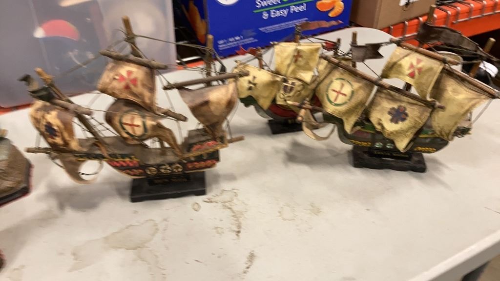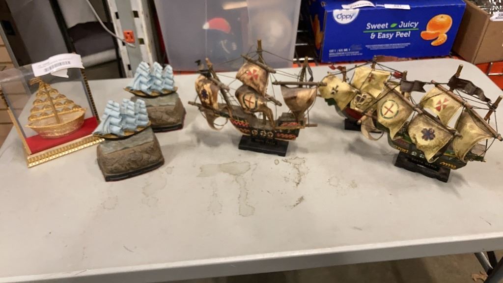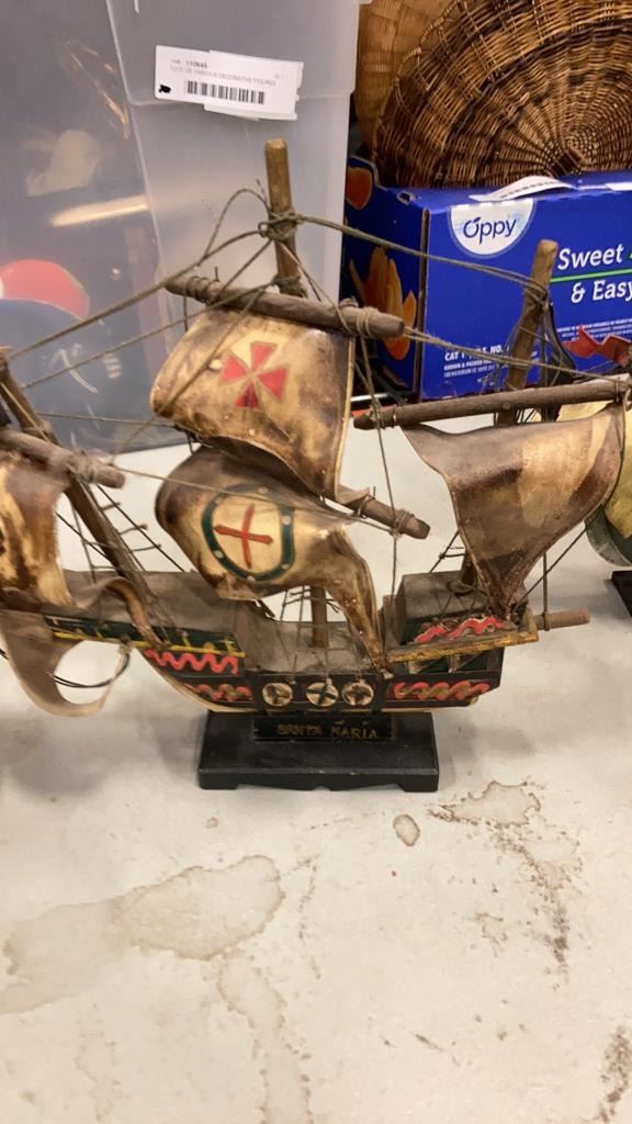 3 SAILING SHIP MODELS, TWO SHIP BOOK STNADS AND DECORATIVE SHIP IN CASE