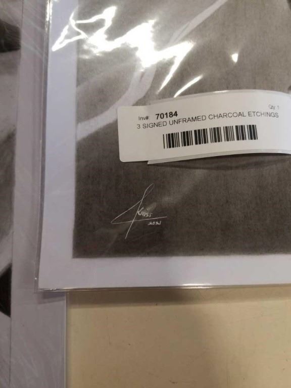 3 SIGNED UNFRAMED CHARCOAL ETCHINGS MANNY PACQUIAO AND KOBE BRYANT