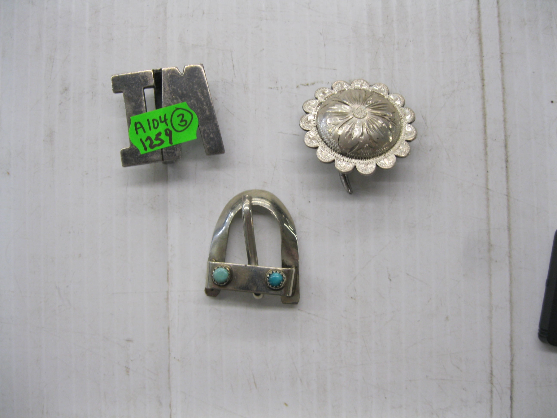 3 SILVER NAVAJO PIECES - BELT BUCKLE, PIN, ETC.