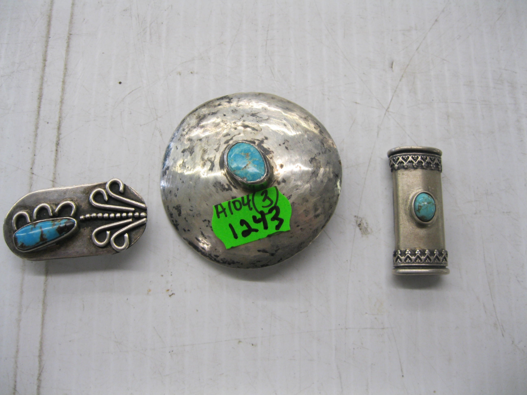 3 SILVER TURQUOISE STONE PIECES