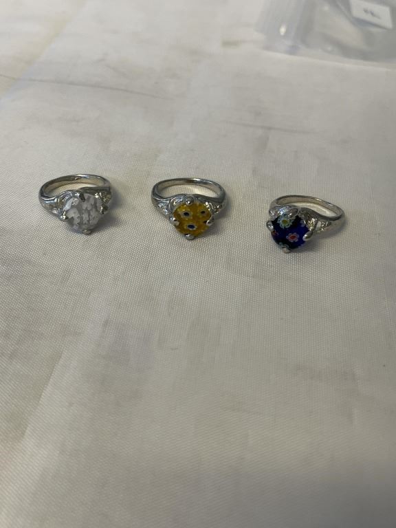 3 SILVER W/ MILLEFIORE VENETIAN GLASS STONE RINGS